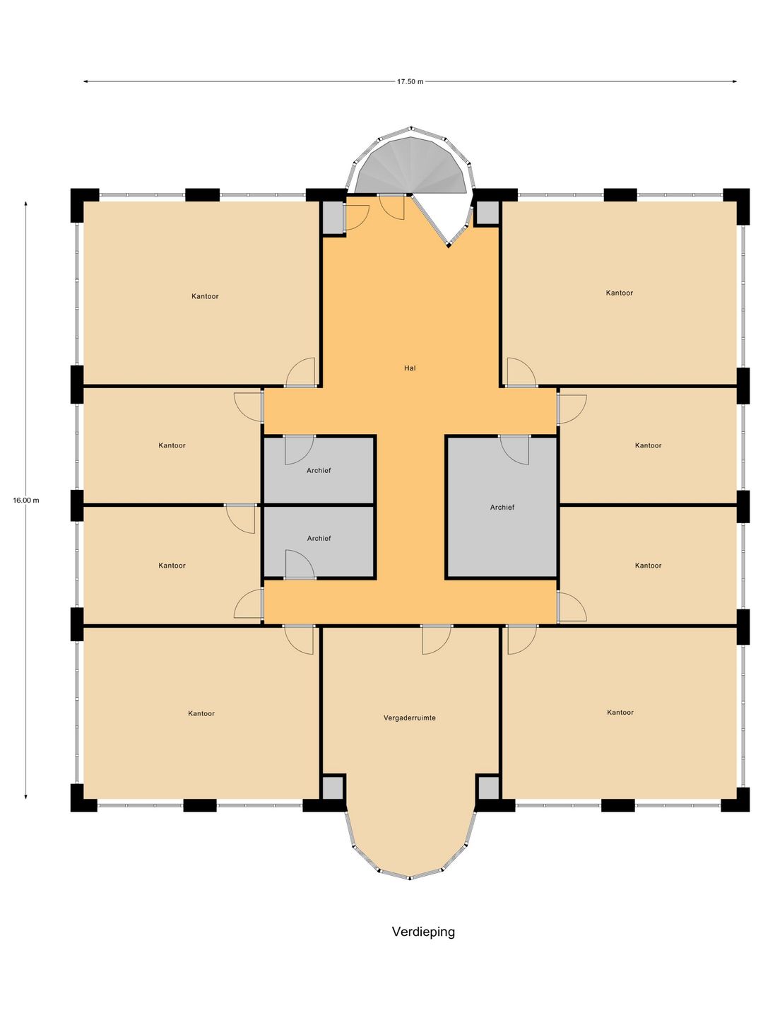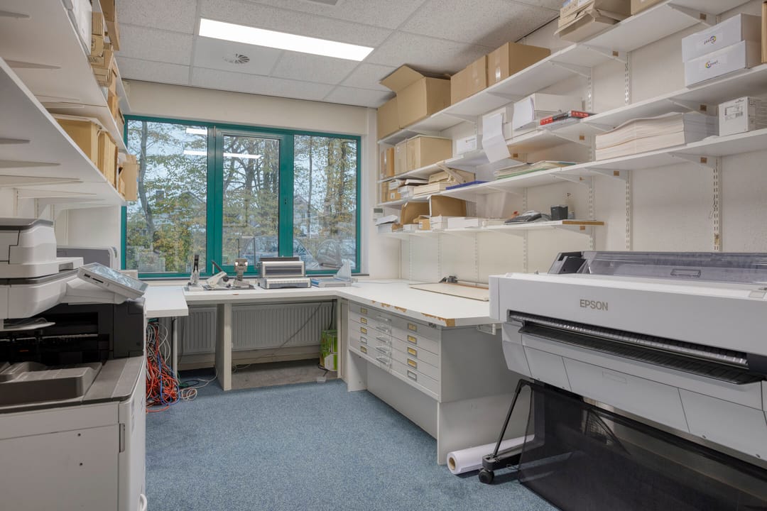 De eerste verdieping bestaat uit negen kantoor-/vergaderruimtes en diverse archiefruimtes.