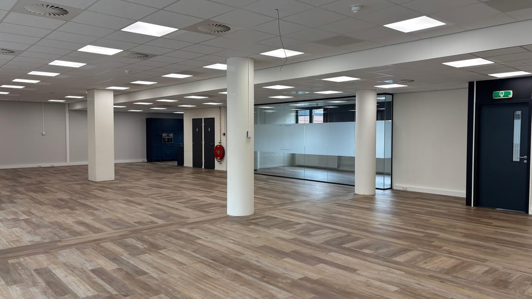 - Inbouwarmaturen, kabelgoten, systeemplafond, toilet, pantry, verwarming en kamerindeling