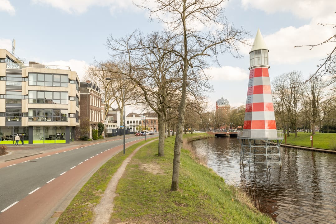 De kantoorruimte is gelegen op de eerste verdieping, hoekligging met prachtig uitzicht op het Stadspark Valkenberg, de Mark en de Vuurtoren.