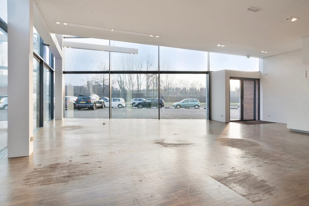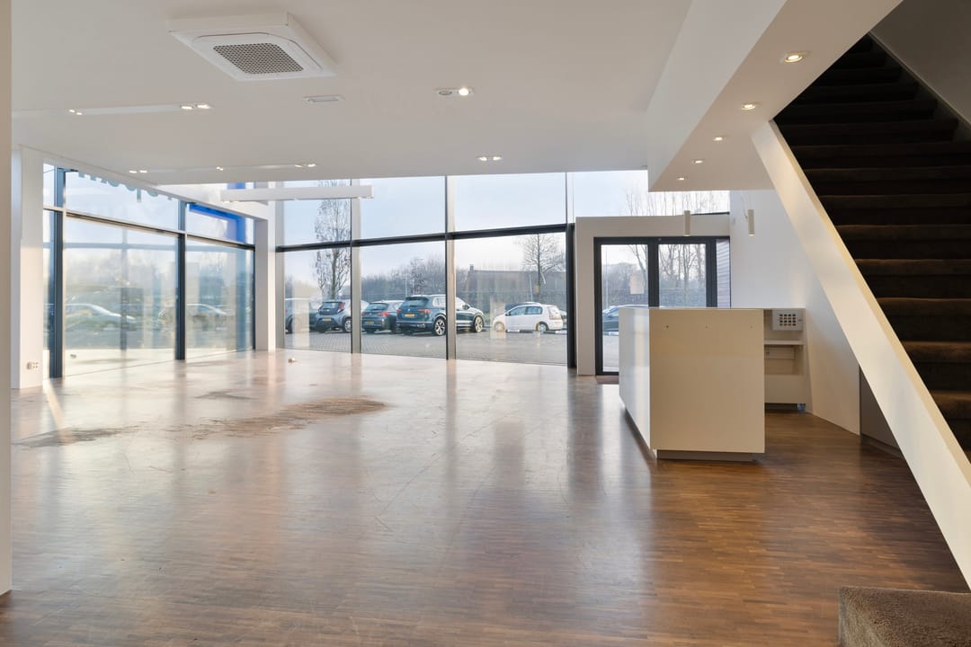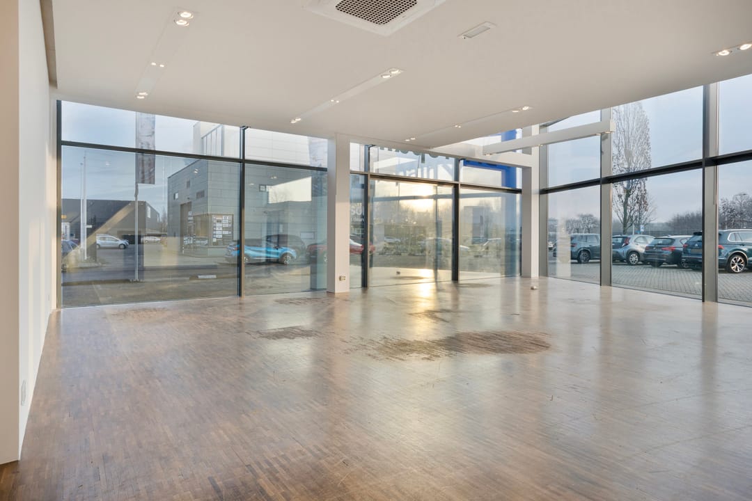Een kantoor-/showroomunit over twee bouwlagen met een indrukwekkende en zeer zichtbare voorgevel met een hoogte van ca. 6,5 meter. Aan de voorzijde is een vide gelegen, welke mogelijkheden biedt voor reclame. De unit is uitstekend geschikt ten behoeve van een showroom voor business-to-business.