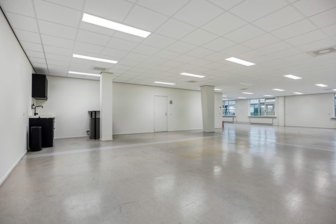 De grootste kantoorruimte heeft een oppervlakte van circa 188 m² en is bij uitstek geschikt als kantoortuin of open werkvloer. Dankzij de royale afmetingen en goede daglichttoetreding biedt deze ruimte eenvoudig plek voor meerdere werkplekken. Hier bevindt zich tevens een pantry, wat bijdraagt aan het dagelijkse comfort.
