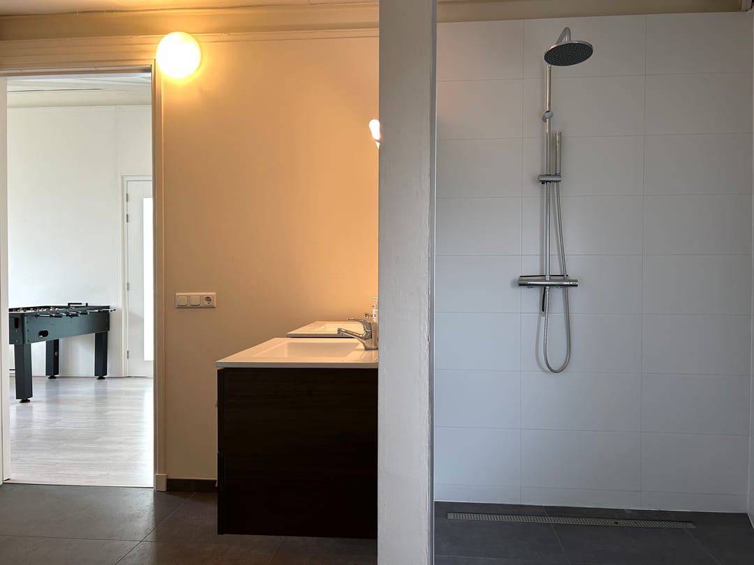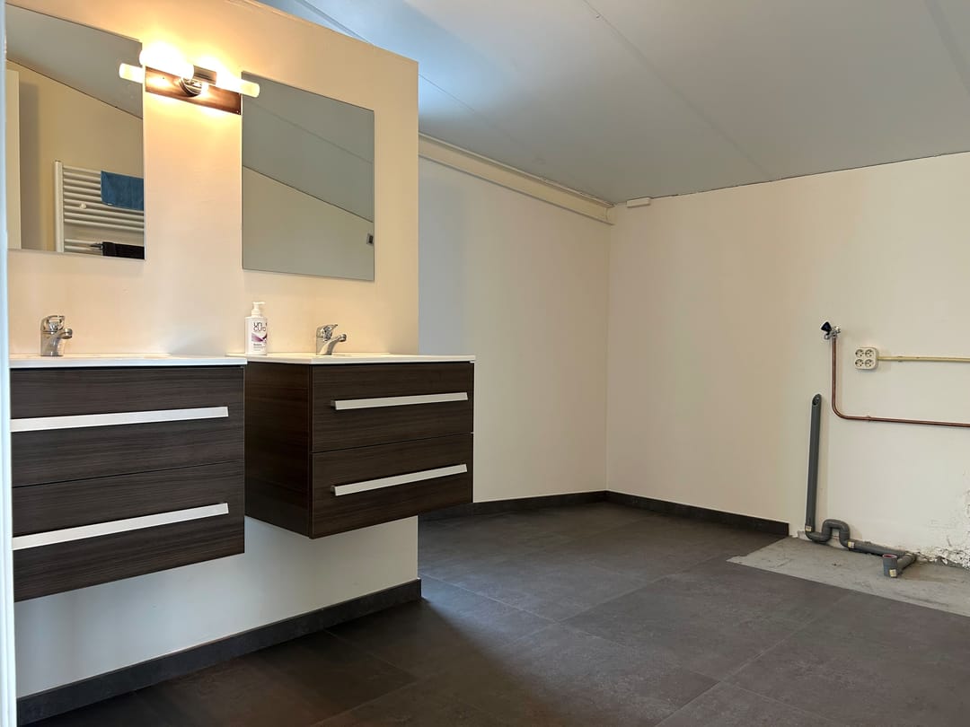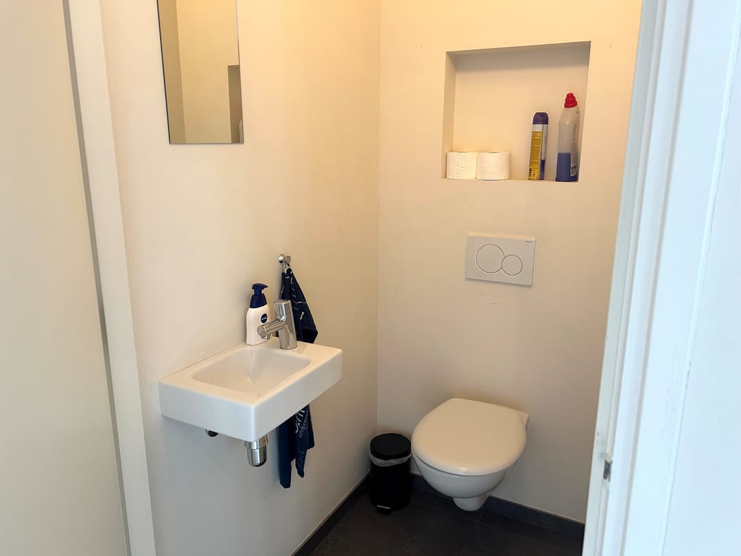 Ruime overloop (ca. 40 m²), te gebruiken als wachtruimte of werkruimte; betegelde toiletruimte met