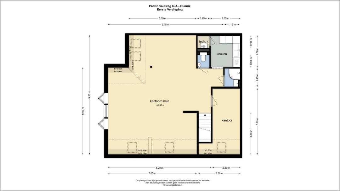 Deze zelfstandige kantoorruimte is gelegen op de eerste verdieping van een bedrijfsgebouw aan de Provincialeweg te Bunnik. Het object beschikt over een eigen entree en een bergruimte op de begane grond.