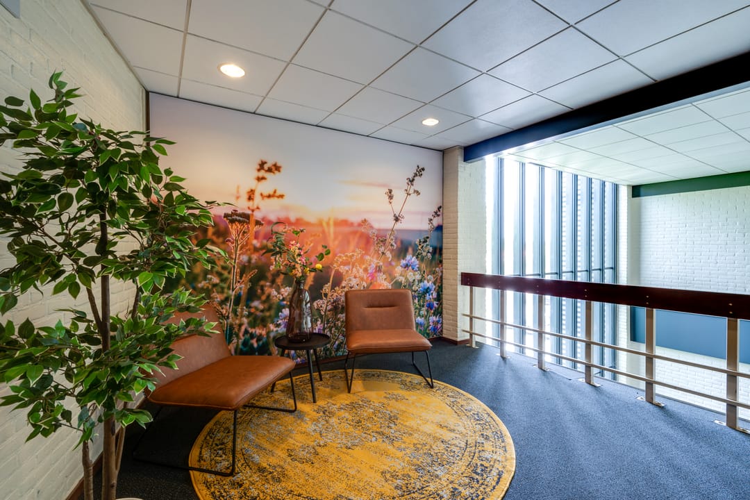 Op de eerste verdieping van het gebouw is een kantoorkamer gelegen van ca. 65 m² bruto vloeroppervlak. Door de unieke ligging direct aan het station zijn er zelden kantoorkamers beschikbaar. De ruimte is van alle gemakken voorzien en er heerst een huiselijke sfeer in het gebouw. De algemene ruimten in het pand zijn recent gerenoveerd. Er zijn twee vergaderkamers beschikbaar voor wie hier gebruik van wenst te maken. Hier zijn geen kosten aan verbonden, wel dient dit van te voren besproken te worden.