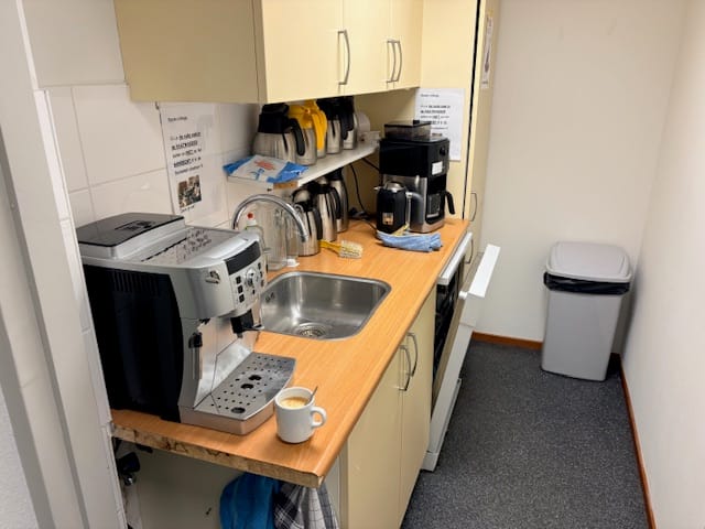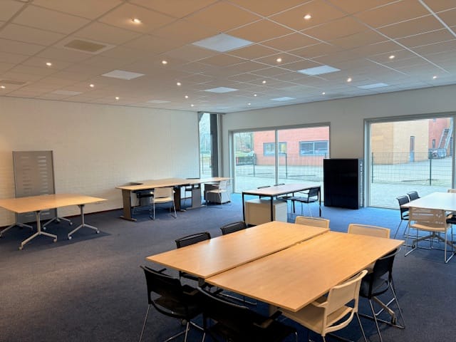 De binnenruimte is voorzien van een systeemplafond met ingebouwde armaturen en spotjes wat een prettige werksfeer creëert. Verwarming van deze ruimte geschiedt via luchtverwarming met een eigen thermostaat. Voorzieningen zoals een pantry met vaatwasser, koelkast en magnetron zijn aanwezig in de gemeenschappelijke hal en worden gedeeld met één medehuurder. Daarnaast is het gebruik van de gezamenlijke toiletten en algemene hal inbegrepen. Het schoonmaken van de algemene ruimtes en toiletten is geregeld en er is een glasvezelaansluiting aanwezig. De additionele servicekosten hebben betrekking op het energiegebruik, schoonmaak van de algemene ruimte, buitenonderhoud inclusief het terrein, onderhoud van de installaties, glasbewassing en gladheidsbestrijding.