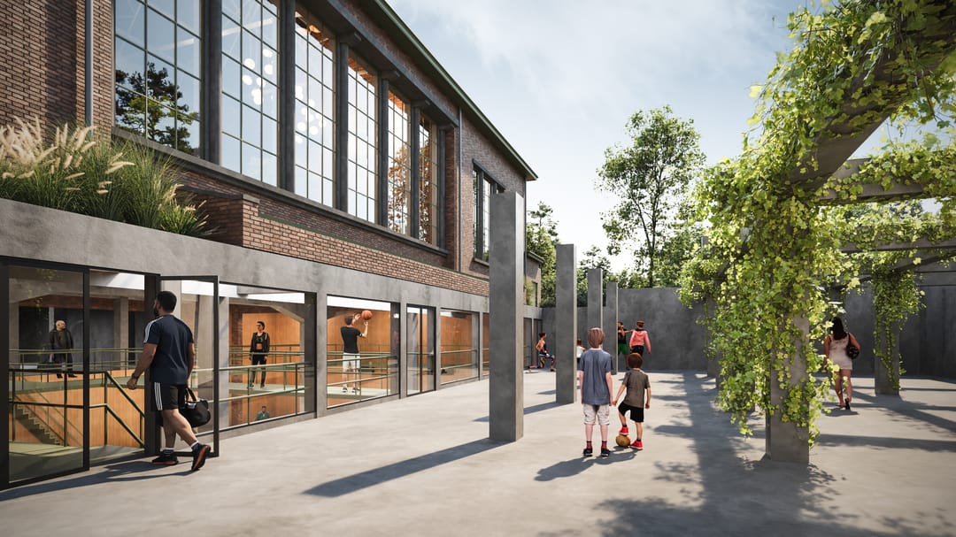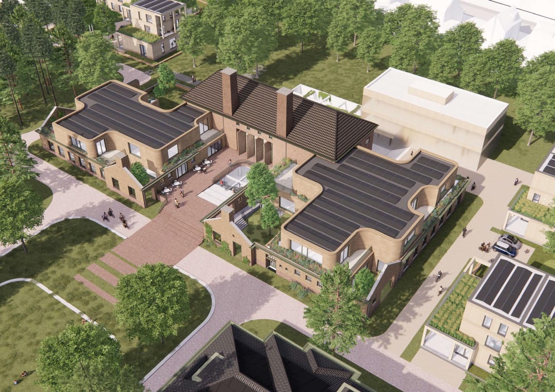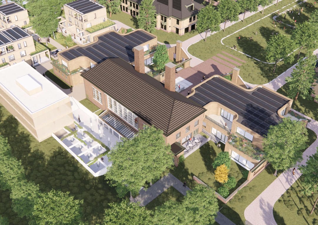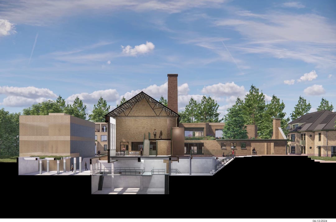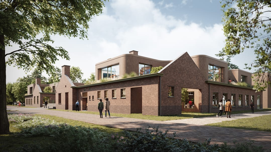 De L-vormige bouwdelen van het huidige gebouw, die in slechte staat verkeren en niet passen bij de nieuwe functie, worden