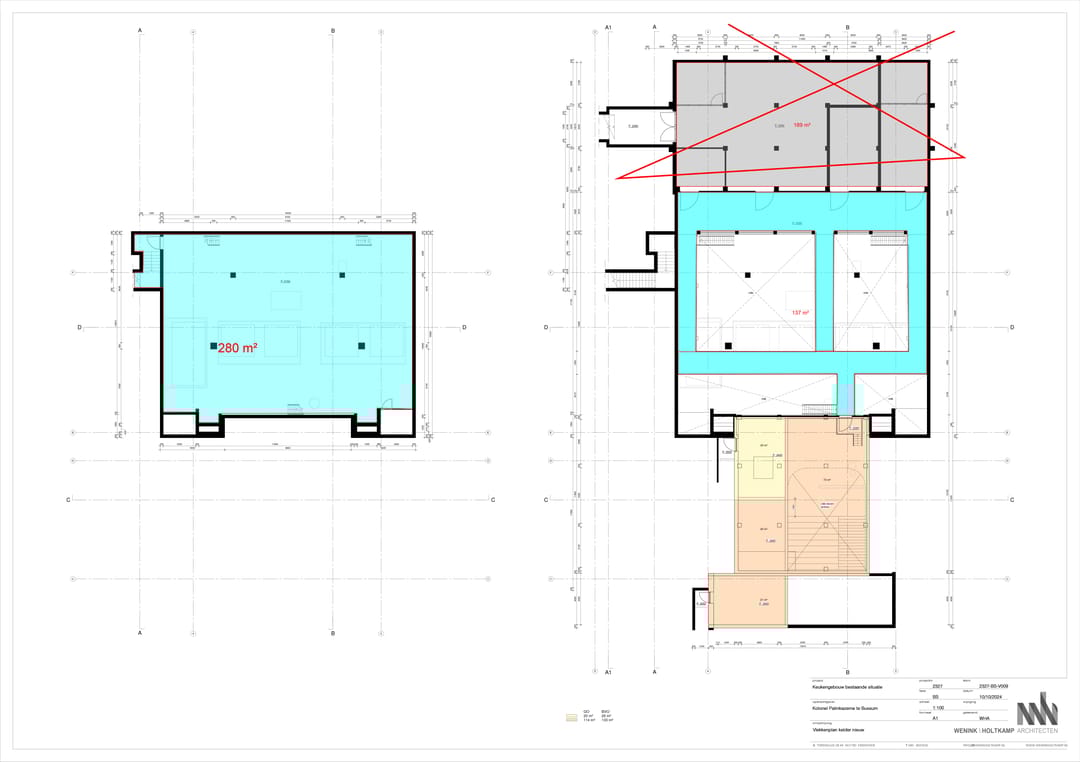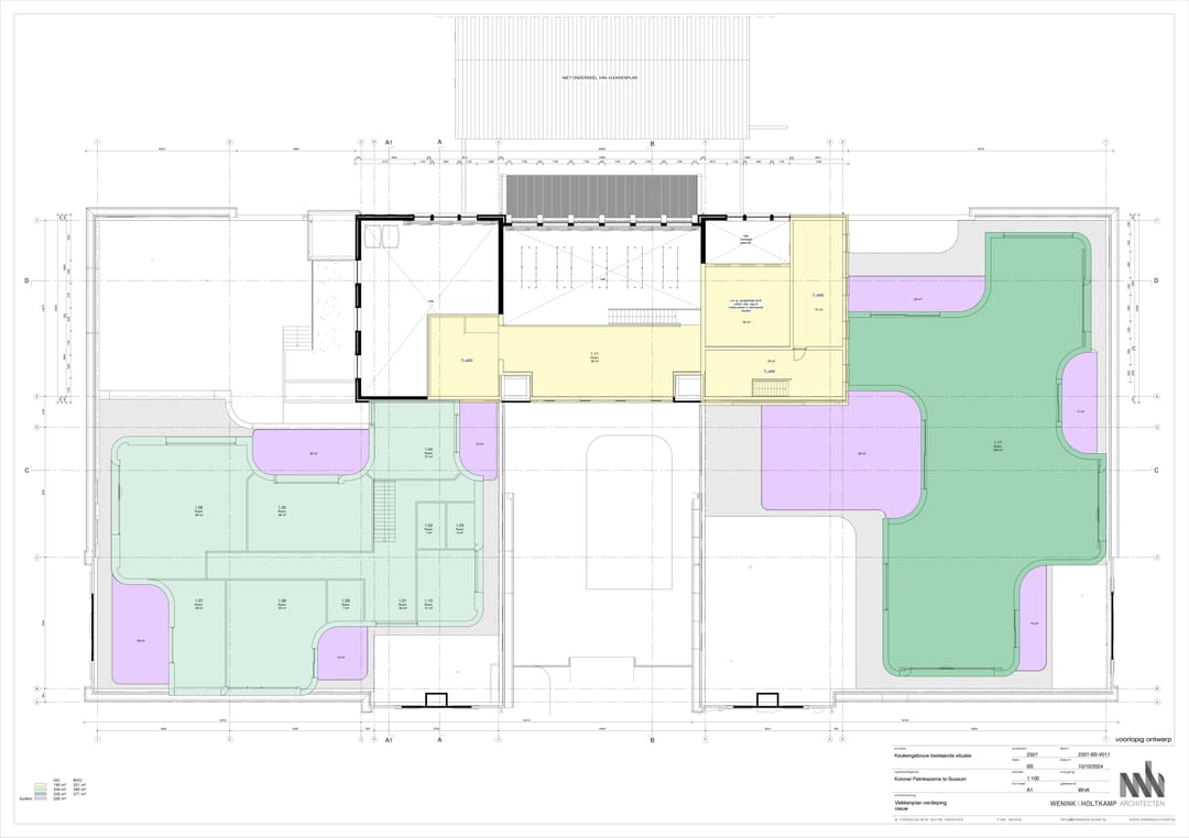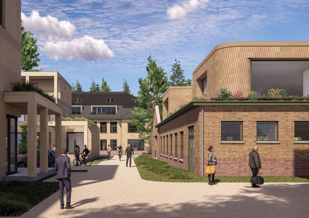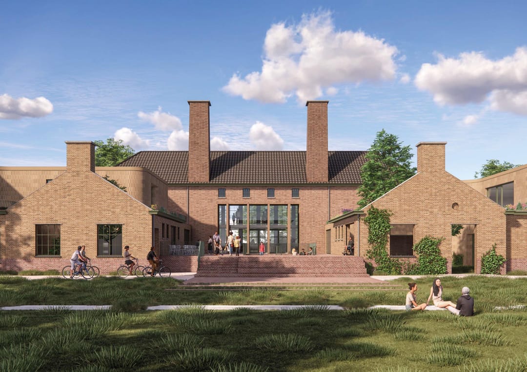 De L-vormige bouwdelen van het huidige gebouw, die in slechte staat verkeren en niet passen bij de nieuwe functie, worden