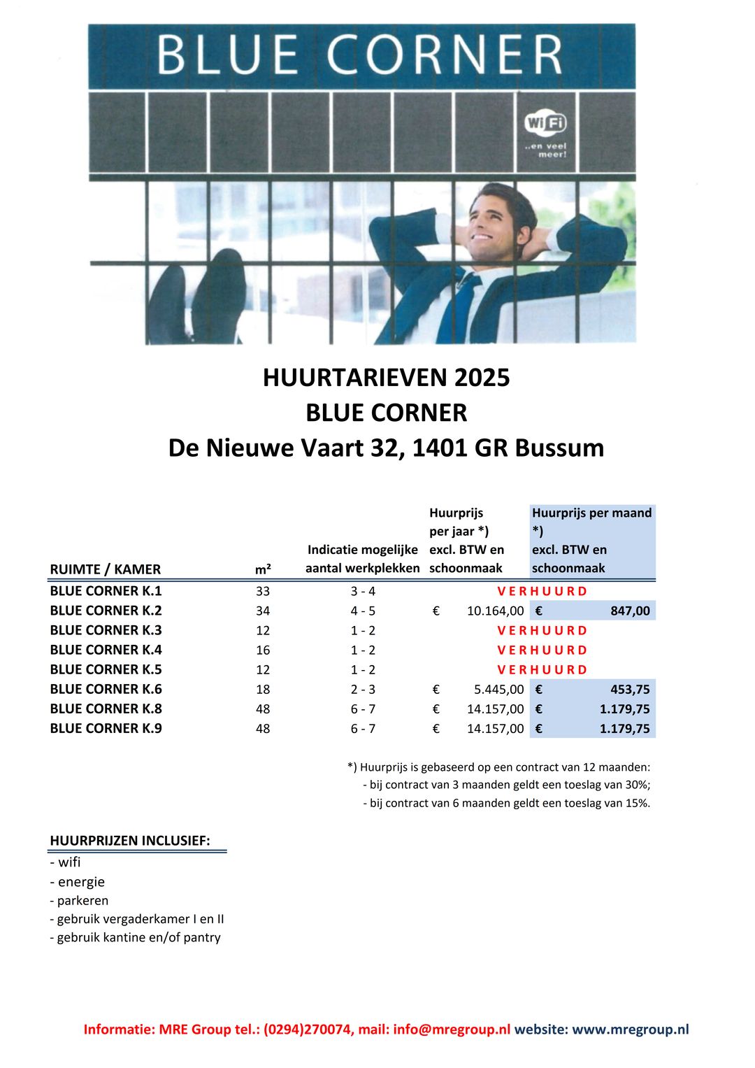 In tegenstelling tot een voorschotbedrag, betreft het hier een vaste all-in huurprijs, zodat u altijd weet waar u aan toe bent. In deze servicekosten is het gebruik van WIFI inbegrepen, alsmede de verbruikskosten van energie en het gebruik van voornoemde ruimten.