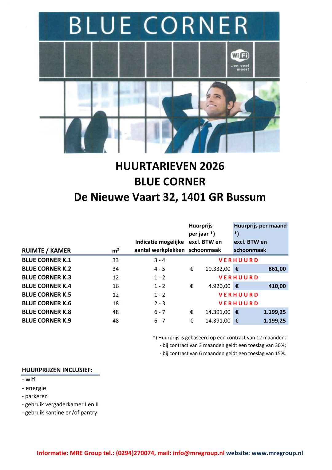 In tegenstelling tot een voorschotbedrag, betreft het hier een vaste all-in huurprijs, zodat u altijd weet waar u aan toe bent. In deze kosten is het gebruik van WIFI inbegrepen, alsmede de verbruikskosten van energie en het gebruik van voornoemde ruimten.