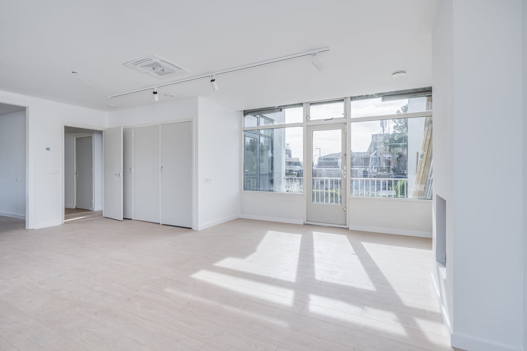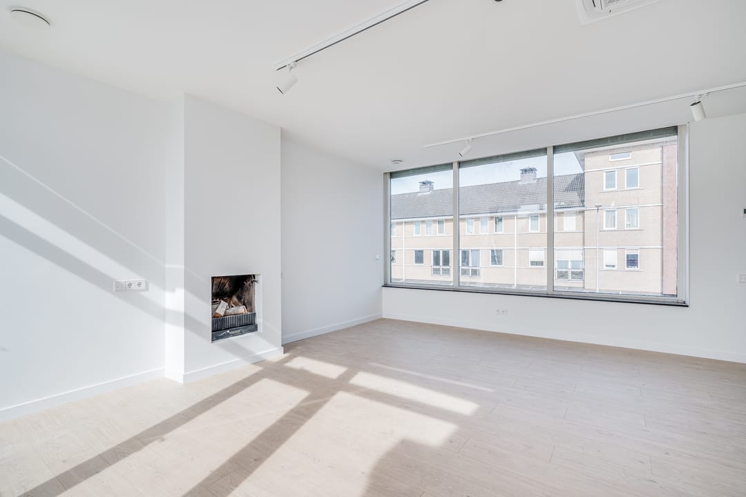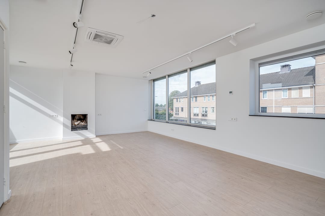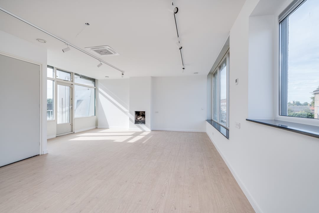 De ruimte van 40m2 is een sfeervolle ruimte met van 2 zijden veel daglicht en toegang tot het balkon. De ruimte van 20m2 staat in open verbinding, maar kan dicht worden opgeleverd. De openhaard is niet meer in gebruik.