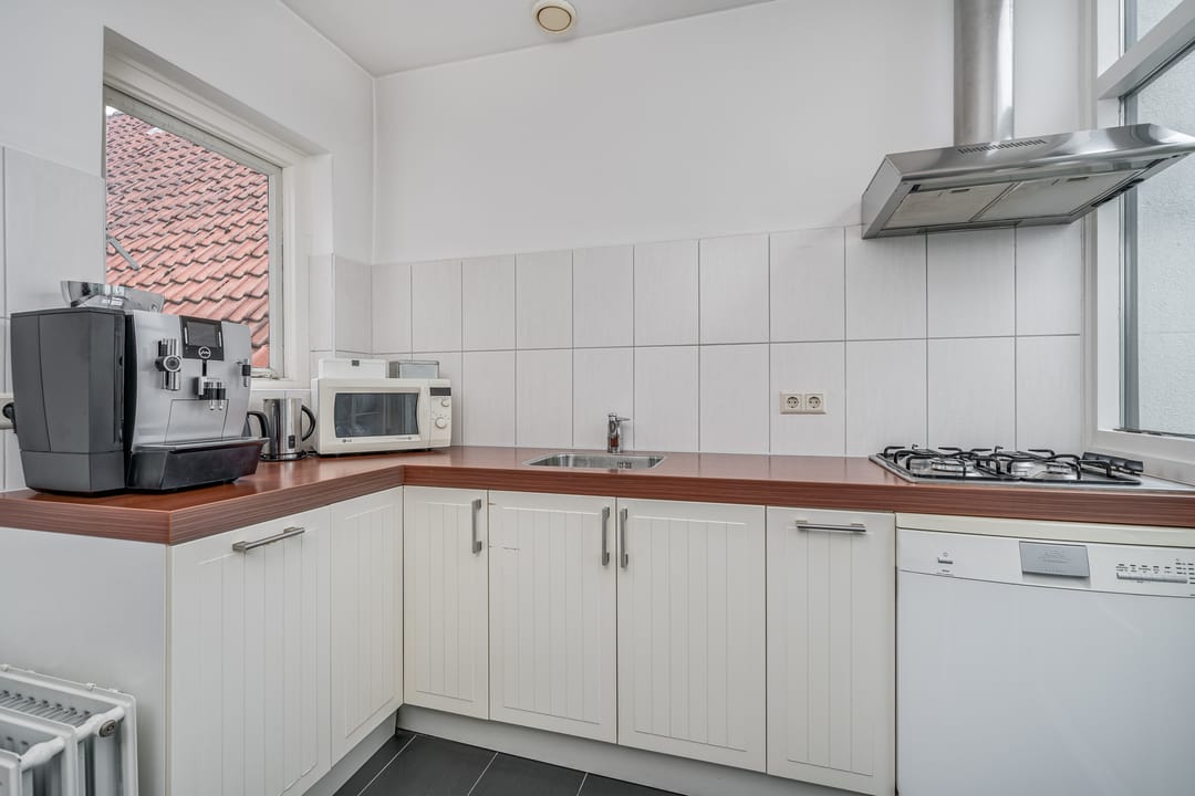 Keuken voorzien van koelkast, gaskookplaat, afzuigkap, vaatwasser en Quooker Cube (voor kokend, koud en bruisend water).