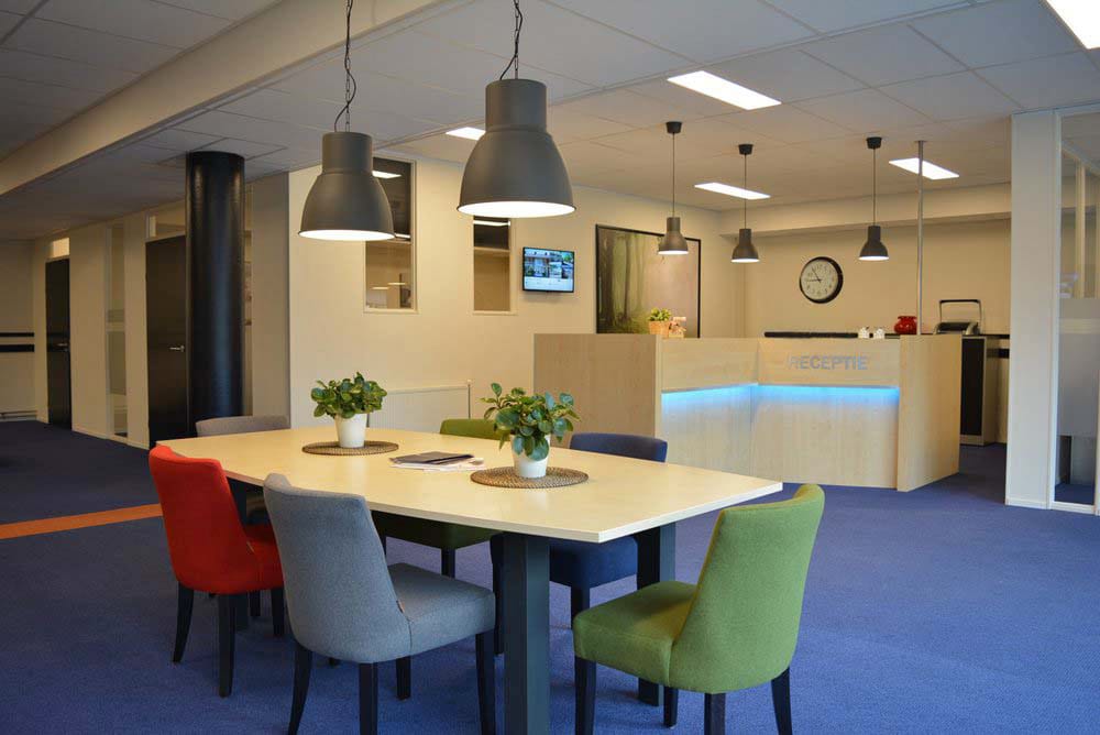 De kantoorruimte is praktisch ingedeeld en beschikt over vier afzonderlijke kantoren, een pantry, sanitair en een interne berging. Daarnaast is de ruimte voorzien van vloerbedekking, een ruime ontvangstbalie (receptie) en een systeemplafond met ingebouwde LED-panelen.
