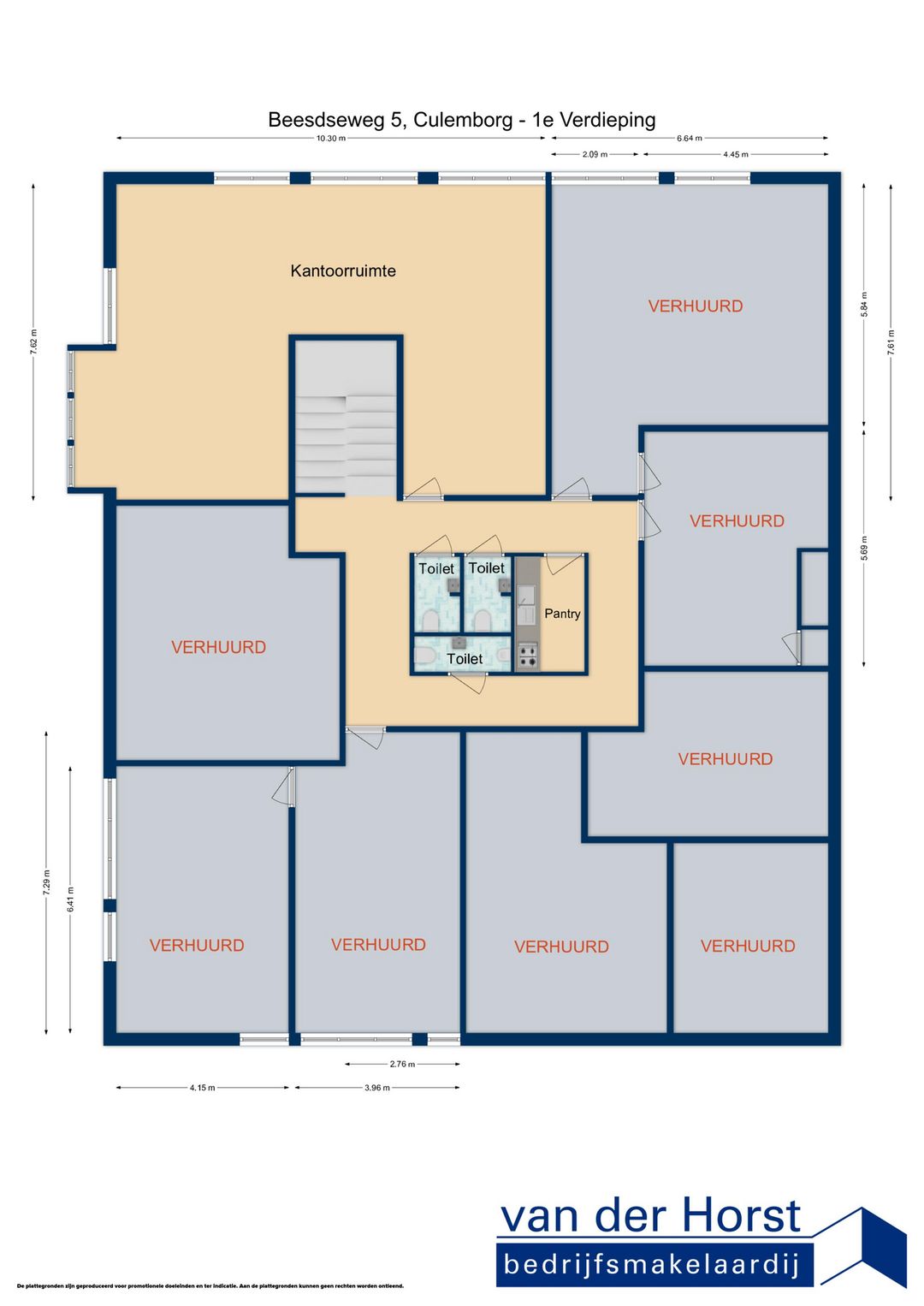 De door Van der Horst Bedrijfsmakelaardij en verhuurder verstrekte informatie dient uitsluitend gezien te worden als een uitnodiging tot nader overleg.