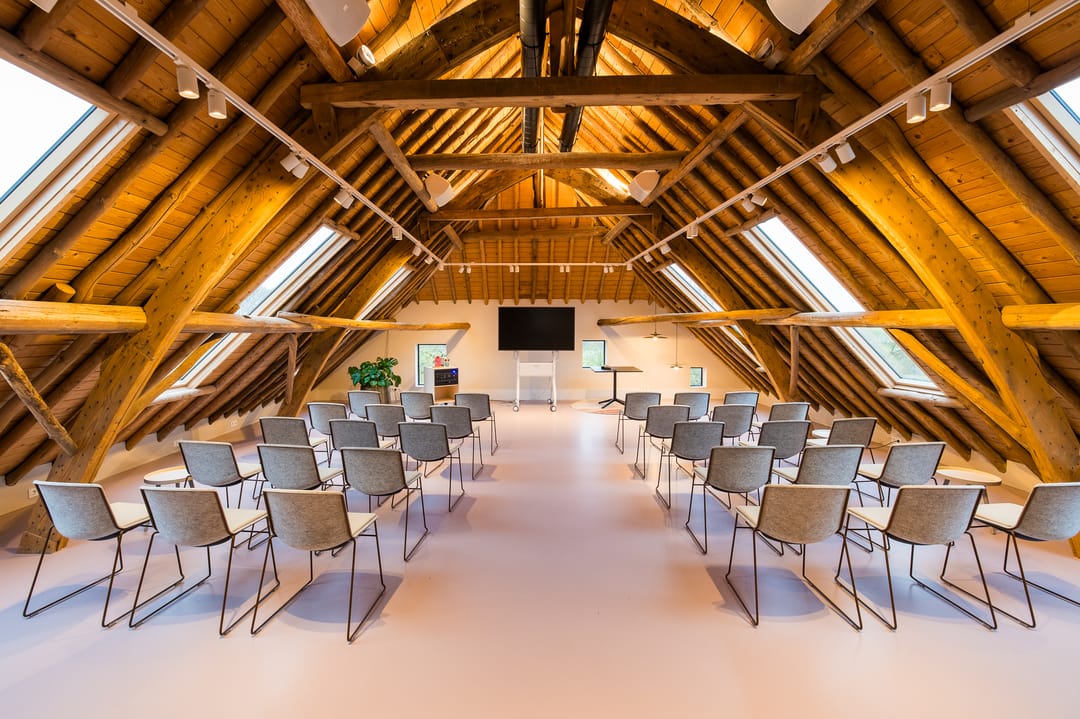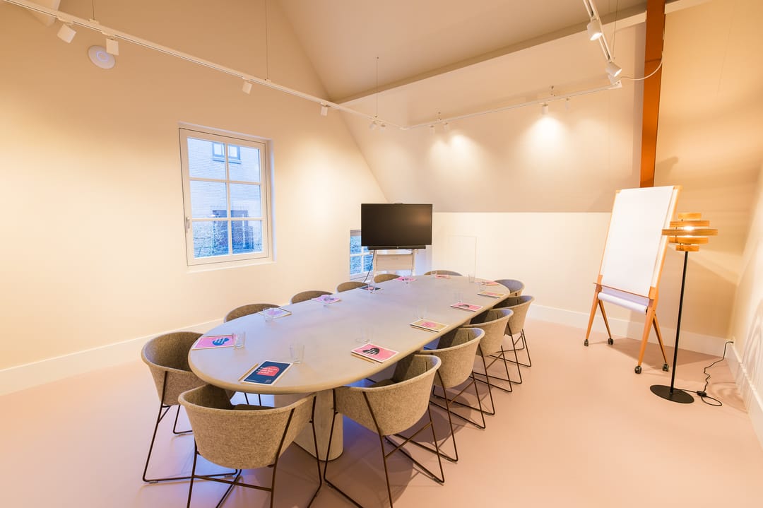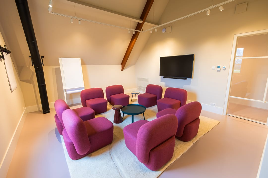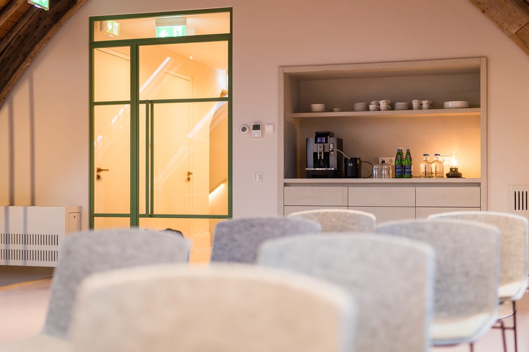 De eerste verdieping van circa 180 m² is ingericht met een ruime en sfeervolle vergaderruimte voorzien van pantry en 2 toiletten. Daarnaast bevinden zich op deze verdieping meerdere ruimten die uitstekend geschikt zijn voor kantoor- en/of vergadergebruik. In elke ruimte is een beeldscherm met geluid aanwezig, met in de grote ruimte op de eerste verdieping ook een extra geluidsinstallatie. De diverse pantry’s zijn voorzien van koelkast, kastruimte en een koffiezetapparaat, maar bevatten geen water toevoer.