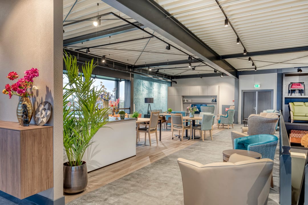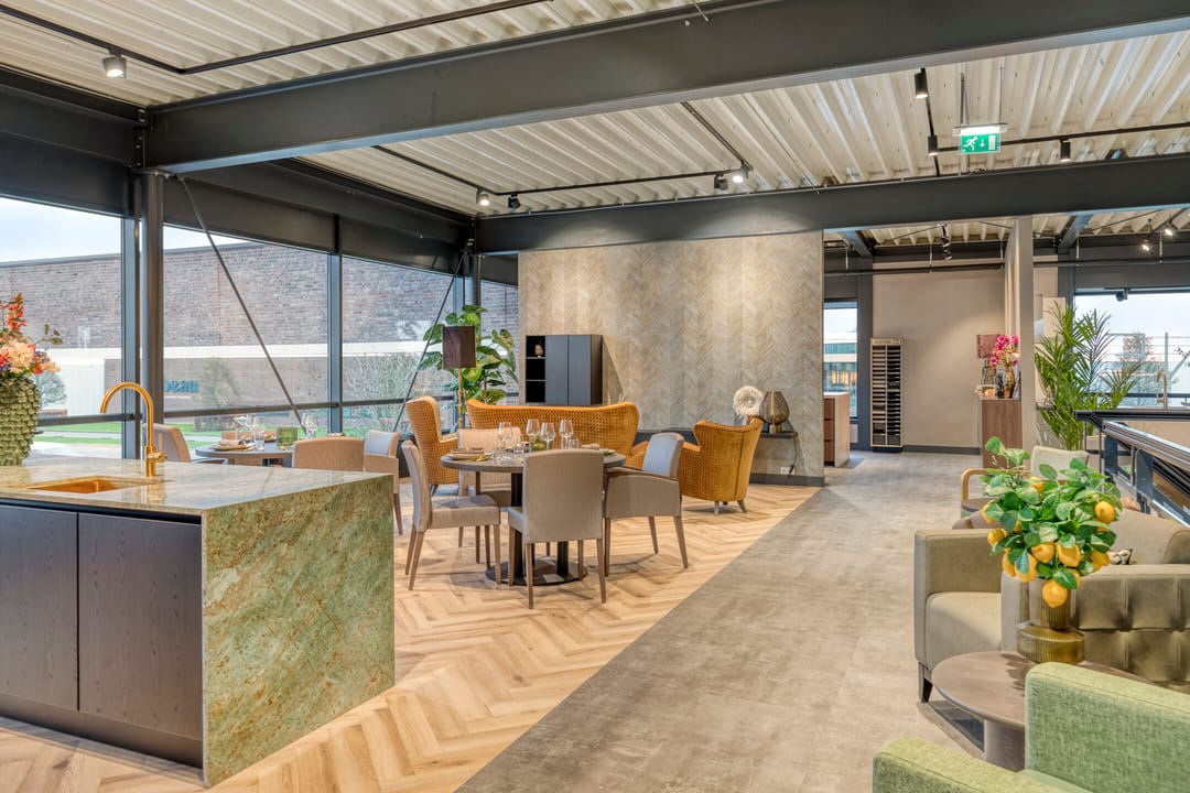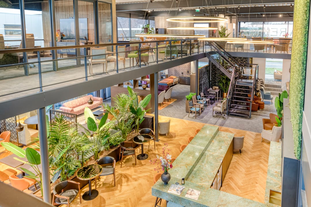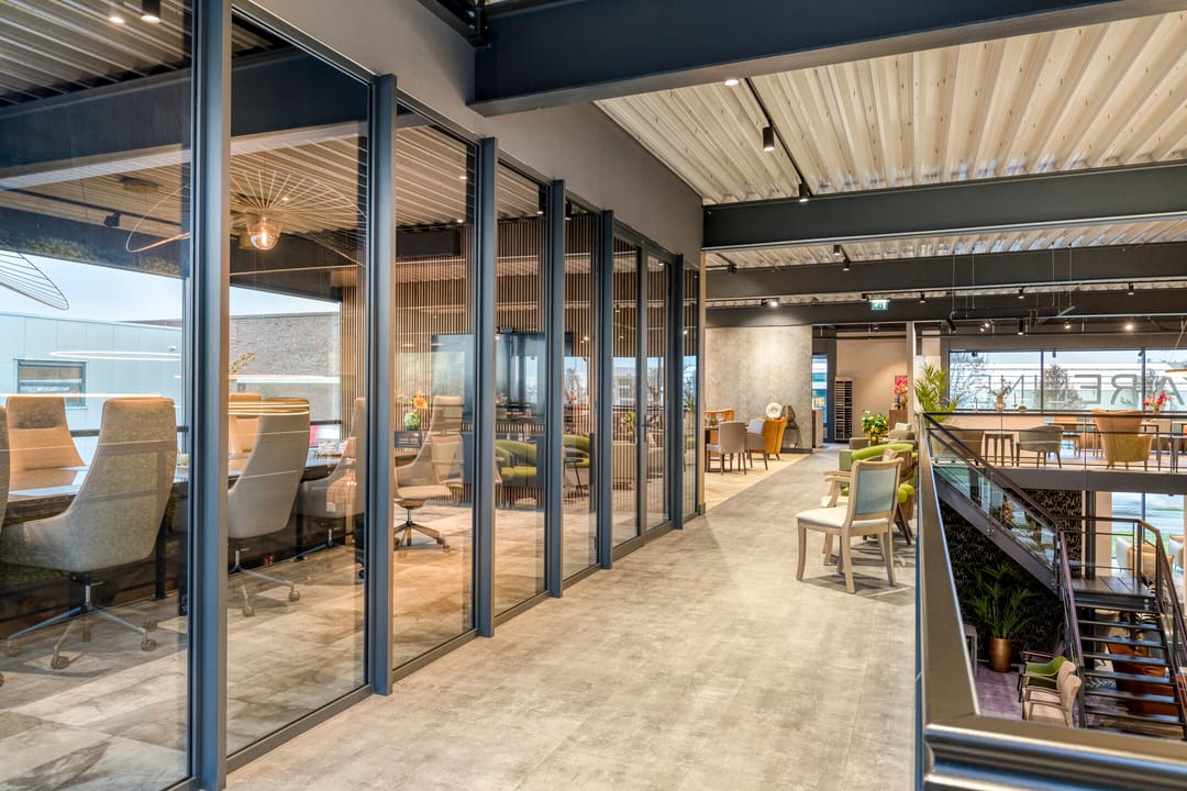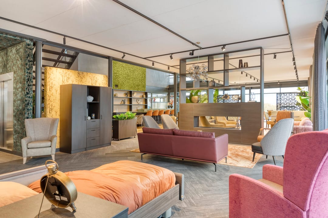De representatieve showroom van in totaal 748 m², verdeeld over twee verdiepingen, is onder meer voorzien van: