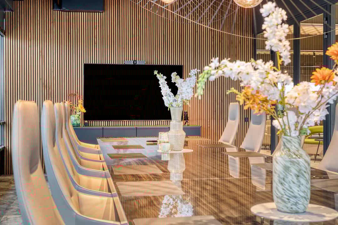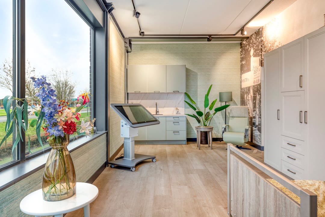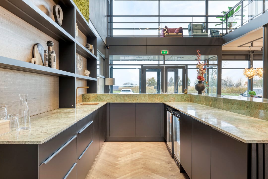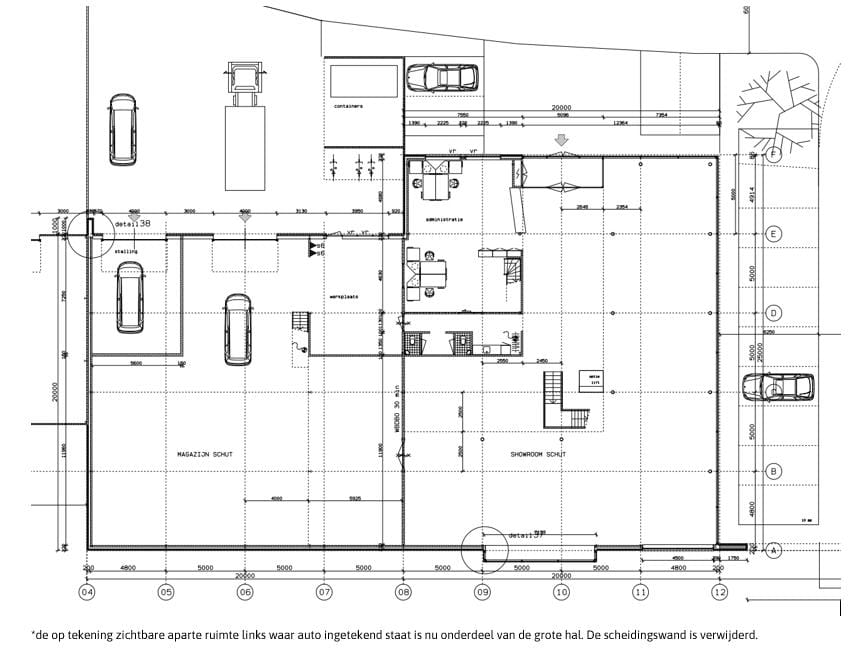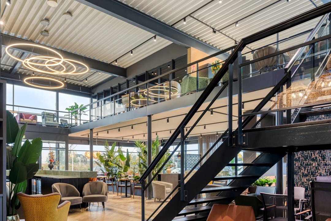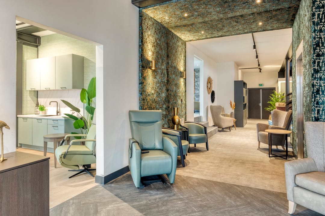 De representatieve showroom van in totaal 748 m², verdeeld over twee verdiepingen, is onder meer voorzien van: