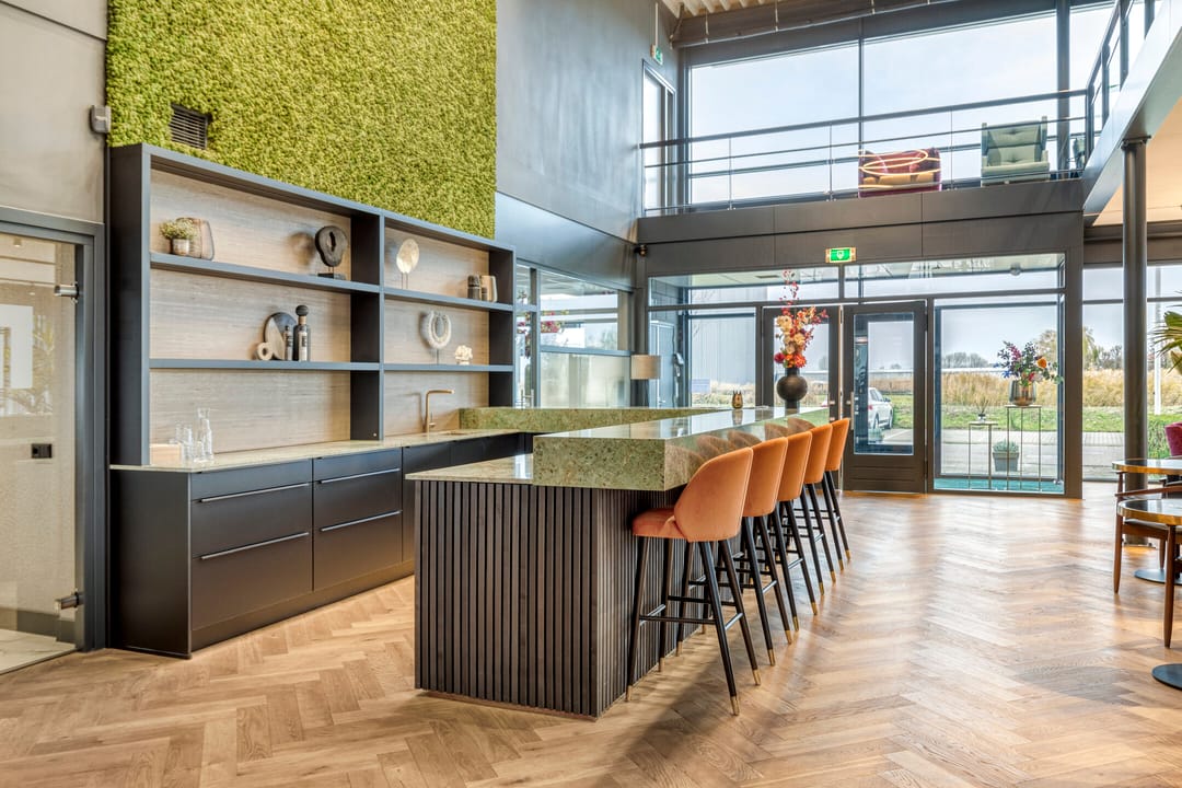 • Moderne bar voorzien van koelkasten en stenen aanrechtblad (bar is ter overname);