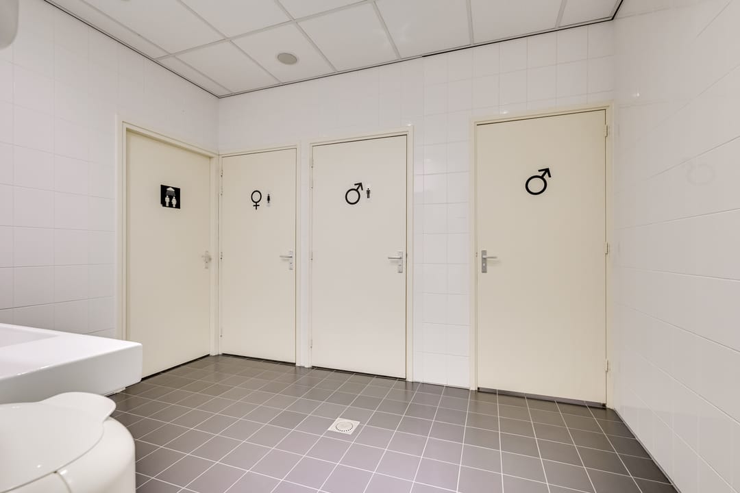 • toiletruimten voorzien van voorportaal, fonteintje en tegelwerk;