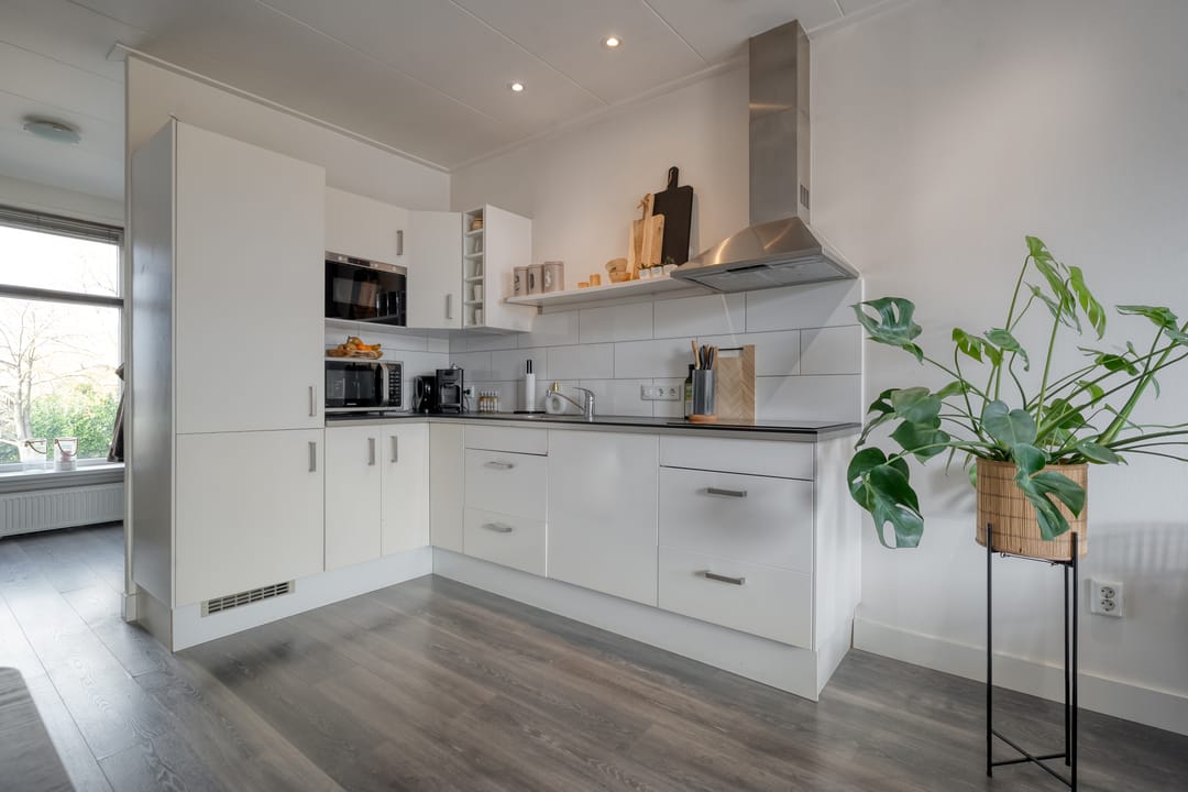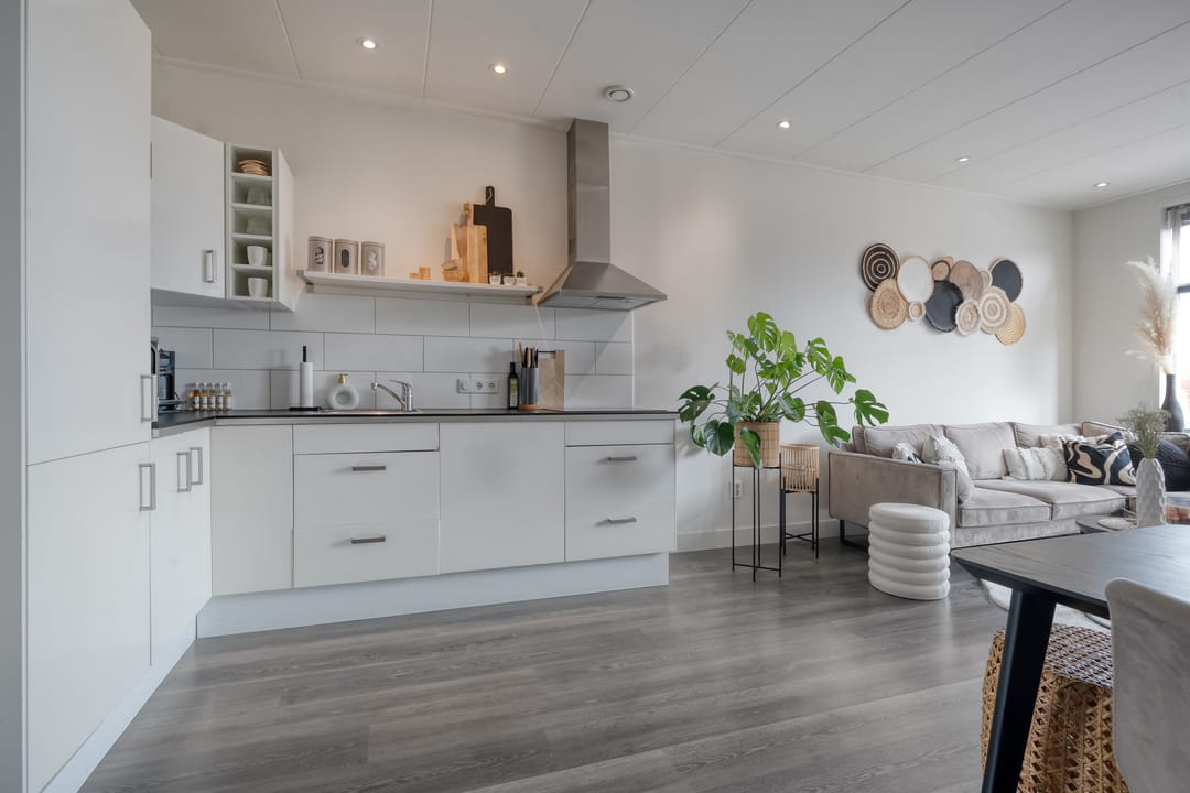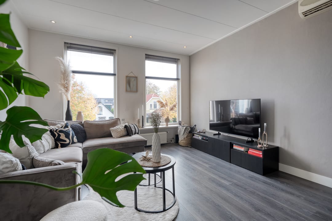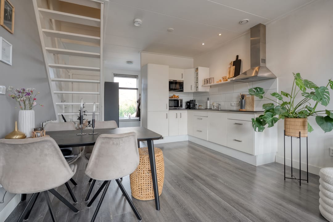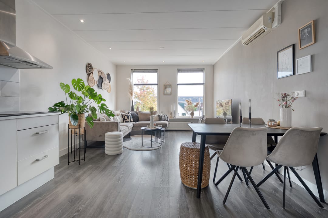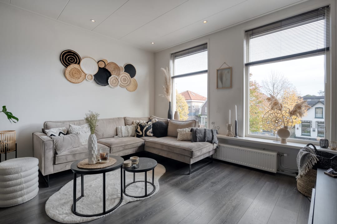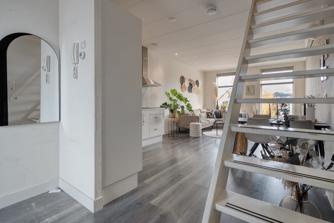 Bij de aankoop van dit object horen ook de twee keurige bovenwoningen, verdeeld over de eerste- en tweede verdieping. Deze hebben recht op het gebruik van twee parkeerplaatsen.
