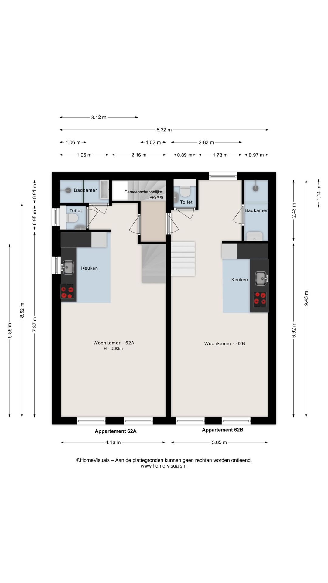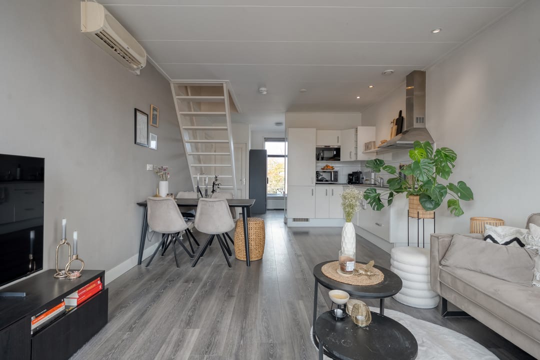 De appartementen beschikken over een gezamenlijke entree/wasruimte op de begane grond, welke van voor en achterzijde te betreden is. Via deze gezamenlijke entree vinden de bewoners de opgang naar boven. Op de eerste verdieping hebben beide appartementen, voorzien van airco, een eigen entree, met toegang tot een open woonkamer/keuken. Deze ruimte is voorzien van een net keukenblok inclusief inbouwapparatuur, een eigen trapopgang naar de tweede verdieping, een separaat toilet en badkamer. De sanitaire voorziening is netjes en eenvoudig in onderhoud. De tweede verdieping is ingericht met twee slaapkamers en is voorzien van dubbel glas. Beide bovenwoningen genieten van vergelijkbare voorzieningen en zijn beiden voor de lange termijn verhuurd.