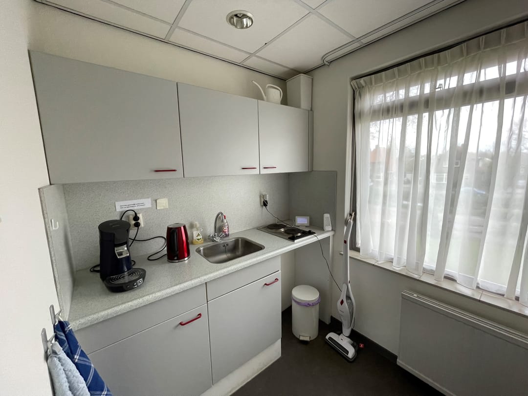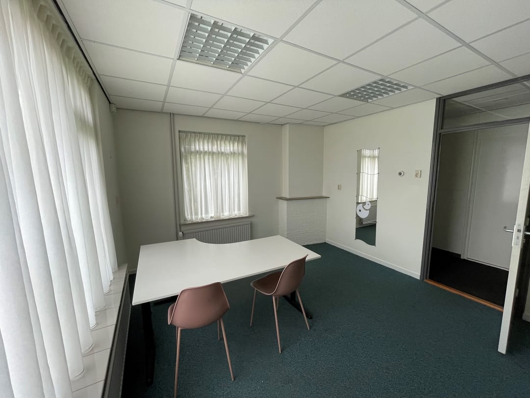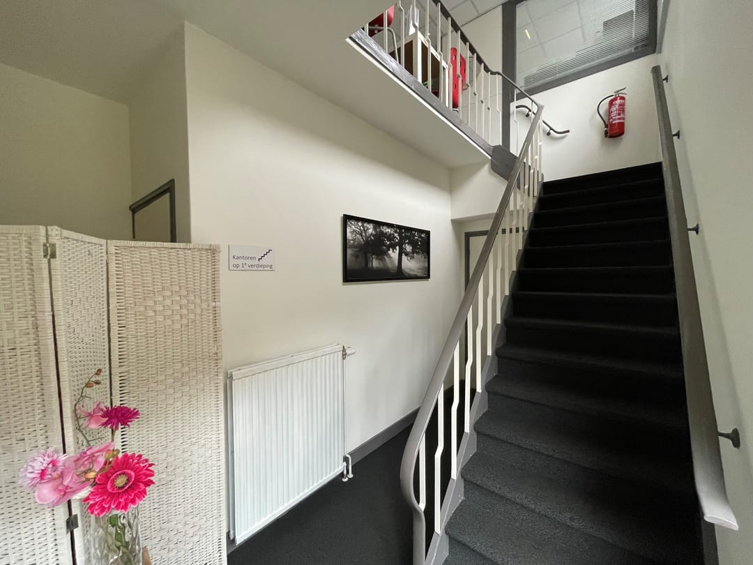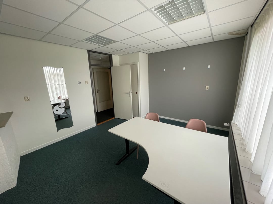 Eerste verdieping: gezamenlijke pantry; toilet; wachtruimte; twee afzonderlijke kantoor-/praktijkruimtes van elk ca. 16 m²