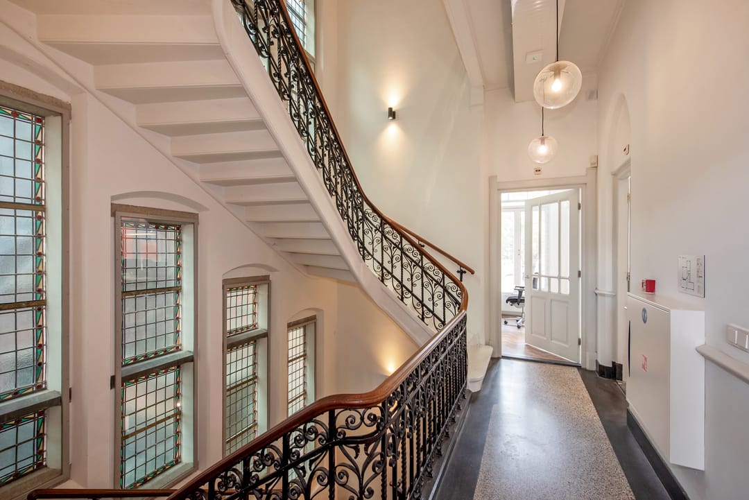 Monumentale kantoorvilla, 431m2 met parkeerplaatsen, serre, moderne installaties, heel veel sfeer, hoge plafonds en gelegen op een uitstekende locatie aan de Schie op een steenworp van de binnenstad en loopafstand van het station, tram en bus.