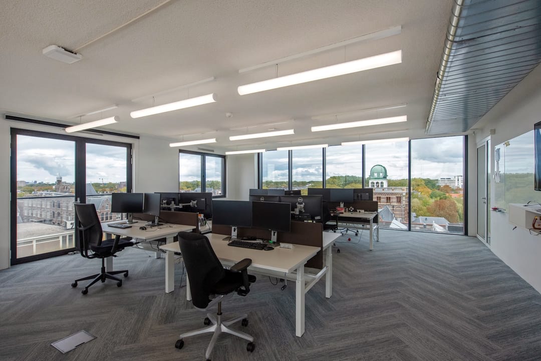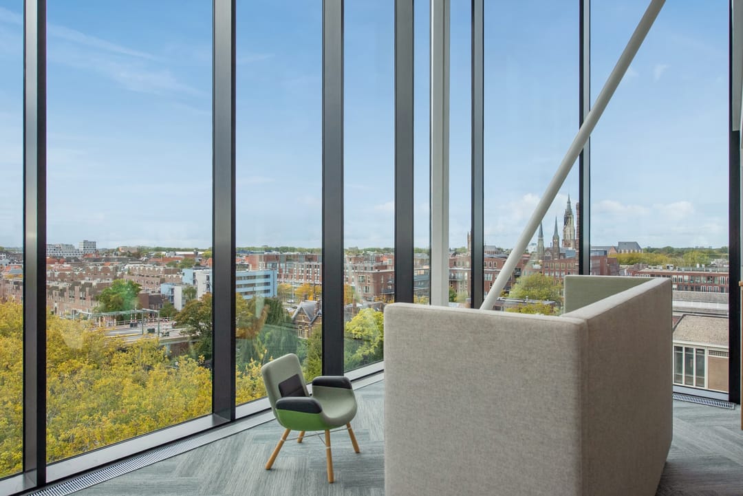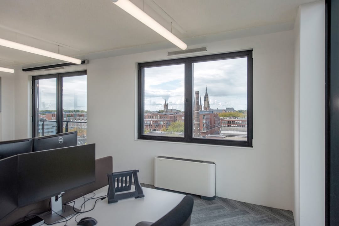 Ultra modern zelfstandig kantoorgebouw met vrij uitzicht over de Delftse binnenstad, 834m2 met 25 parkeerplaatsen, energielabel A, moderne installaties, lift en ook heel veel sfeer door vides, hoge plafonds en natuurlijk het uitzicht !
