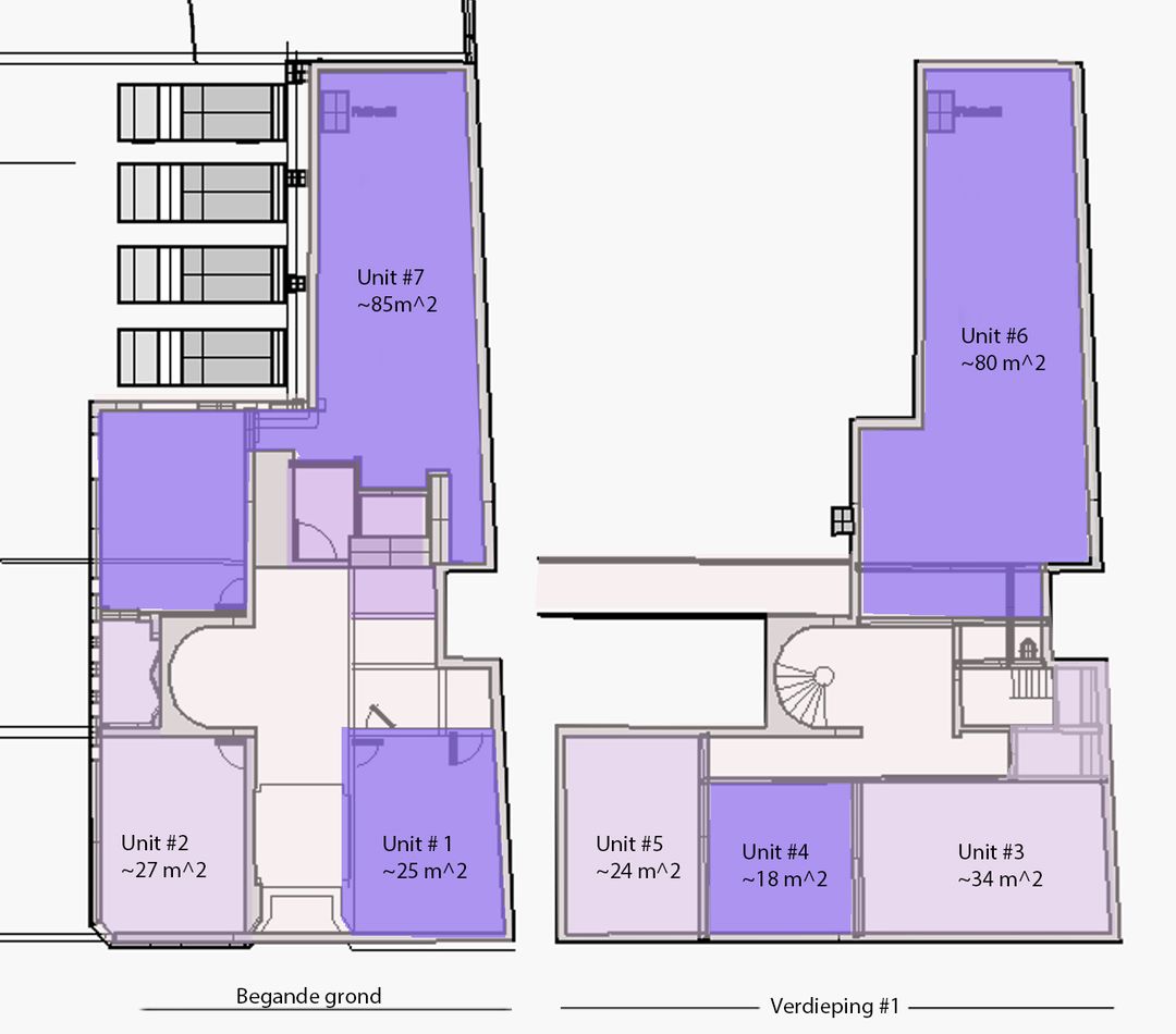 Unit 5 zijnde 1 kamer op de 1e verdieping te huur van 24 m2 (bruto 30m2) voor € 450 + € 107,50 servicekosten -