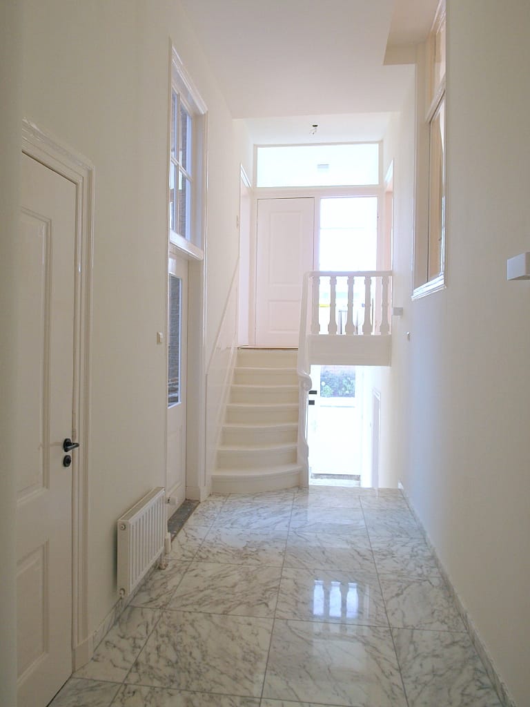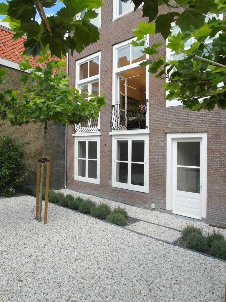 Dit pand is ca. 12 jaar geleden geheel gerenoveerd/opnieuw opgebouwd. Een voor- tussen- en achterhuis over 2 lagen met tussen gelegen patio's en achtergelegen fraaie stadstuin.