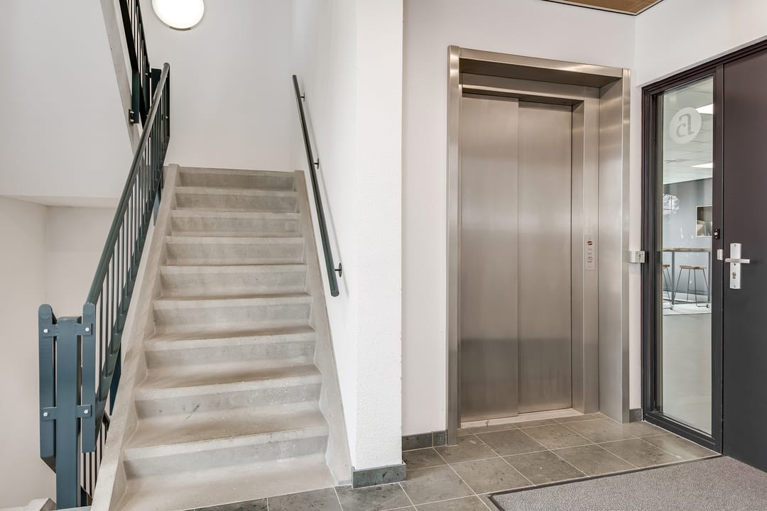 In de centrale hal op de begane grond biedt zowel de lift als de trap toegang tot de verdiepingen. Elke verdieping is voorzien van een eigen toiletgroep (dames en heren). De kantoorruimte is wisselend qua indeling en heeft, door de aanwezigheid van de glazen systeemwanden, een open, fris en licht karakter.