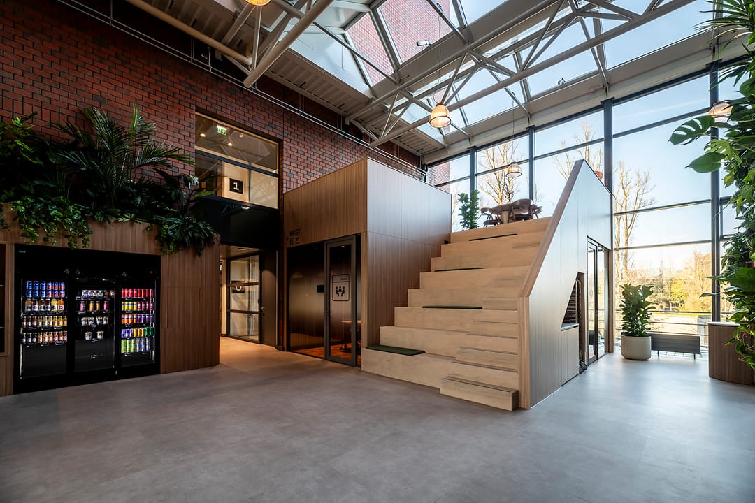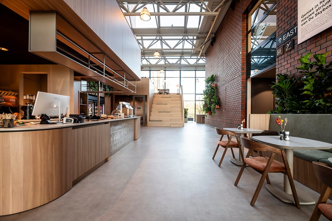 De Skybox is in 2025 getransformeerd tot een modern multi-tenant gebouw met moderne “social heart”, vriendelijke host, sfeervolle lobby en gemeenschappelijke vergaderfaciliteiten.