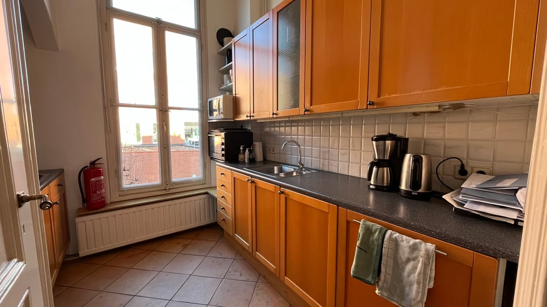 De kantoorruimtes, gelegen op de tweede verdieping, hebben een totale oppervlakte van circa 60 m², verdeeld over drie kamers. Deze kamers zijn ook apart te huur. Op de verdieping is een eigen toilet aanwezig. Op de eerste verdieping bevindt zich een pantry die gezamenlijk gebruikt zal worden met de gebruikers van de eerste verdieping.
