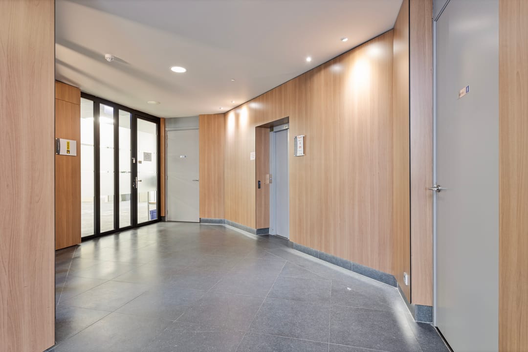 De entree op de begane grond geeft toegang tot het gebouw. Met zowel de lift als de trap zijn de verdiepingen beschikbaar. De kantoorruimtes zijn volledig zelfstandig op de gezamenlijke toiletgroep in de gang na.