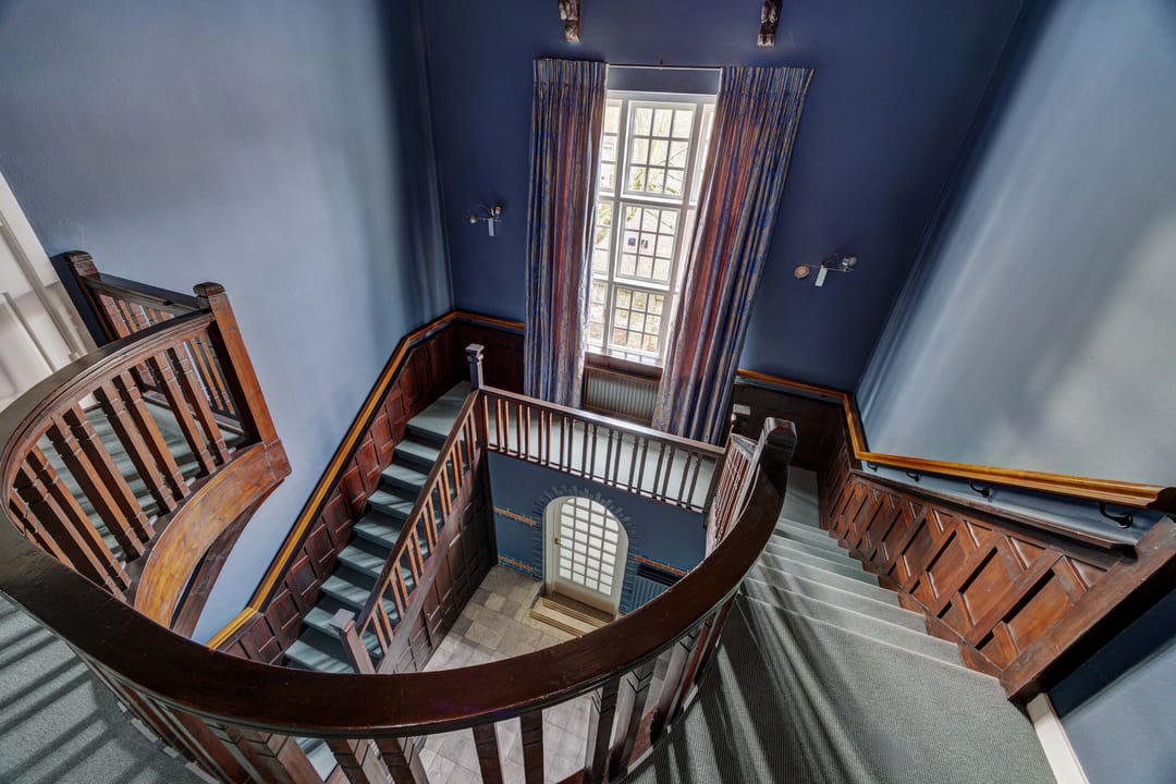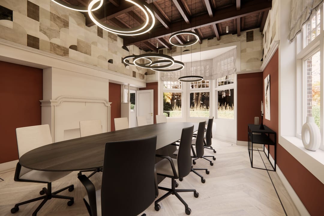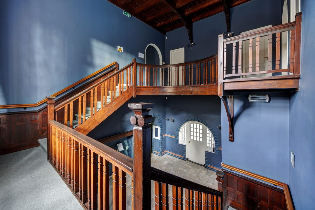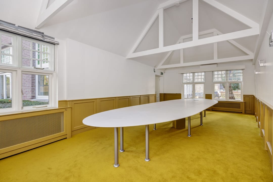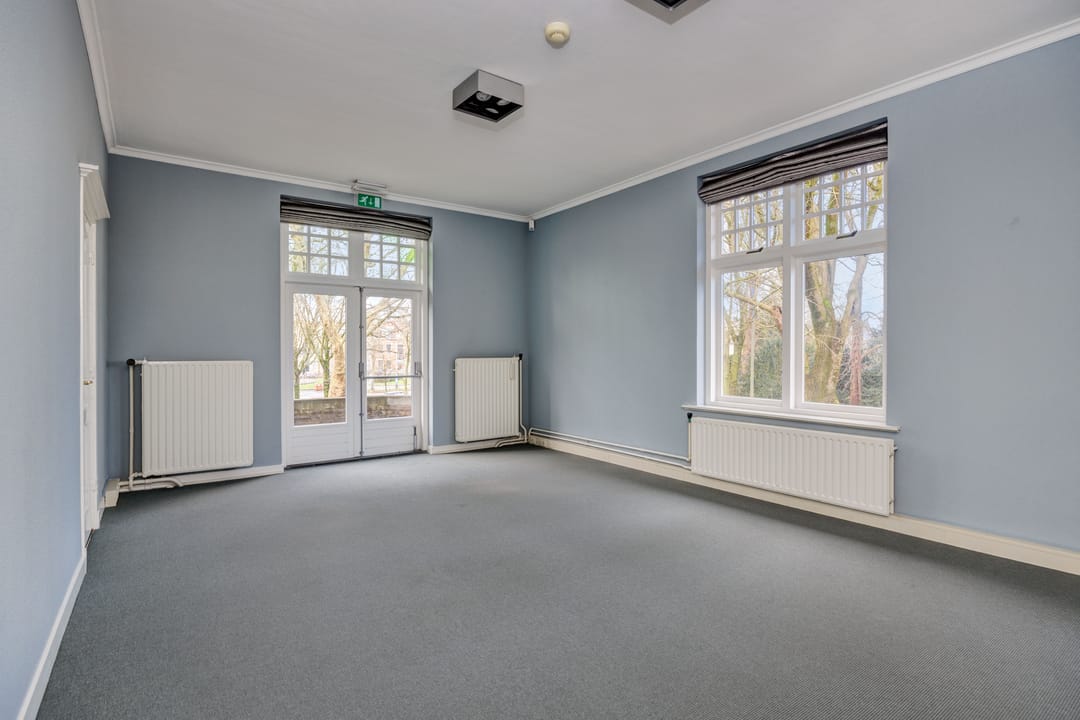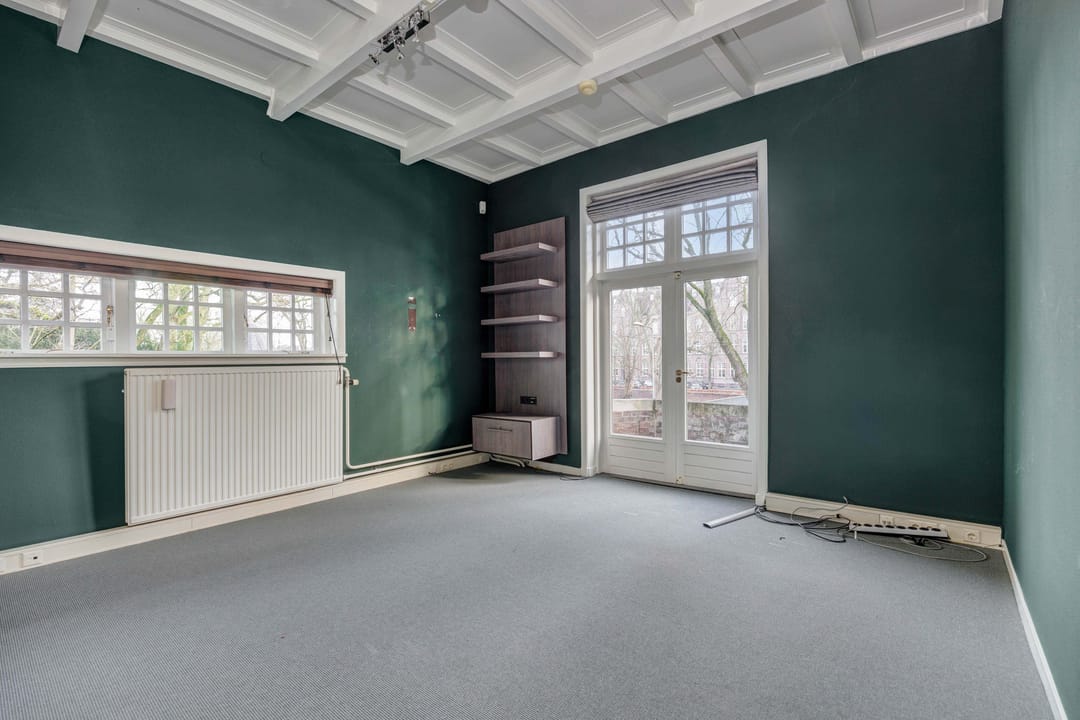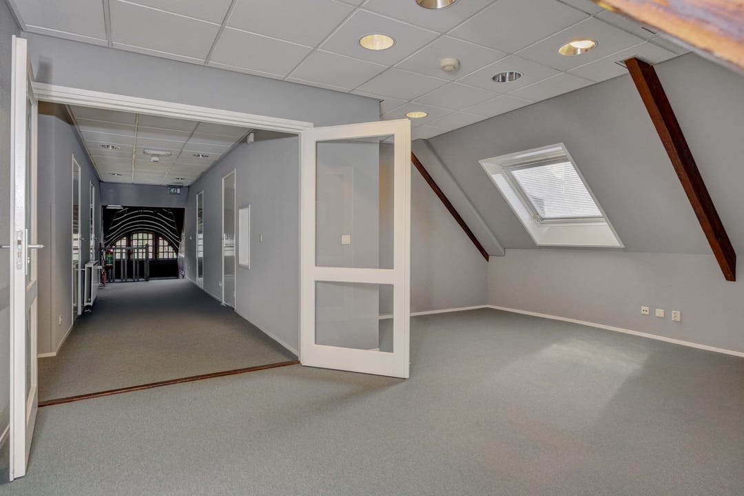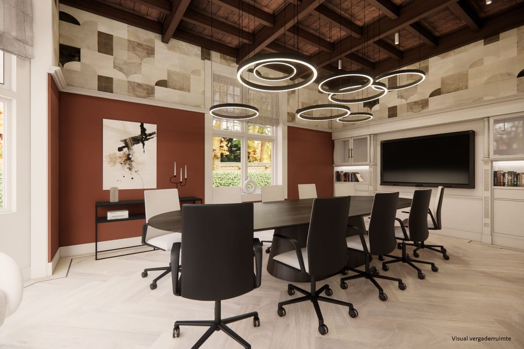 Via de monumentale trap bereikt u de eerste verdieping, waar de rustige sfeer zich uitstekend leent voor geconcentreerd werken. De zes royale kamers op deze etage bieden volop ruimte voor diverse teams of afdelingen. Drie van deze vertrekken hebben openslaande deuren naar speelse balkons, wat een gevoel van vrijheid en luchtigheid geeft aan de werkdag. Ook hier zijn de nodige faciliteiten, zoals een eigen pantry, aanwezig om de efficiëntie op de werkvloer te waarborgen.