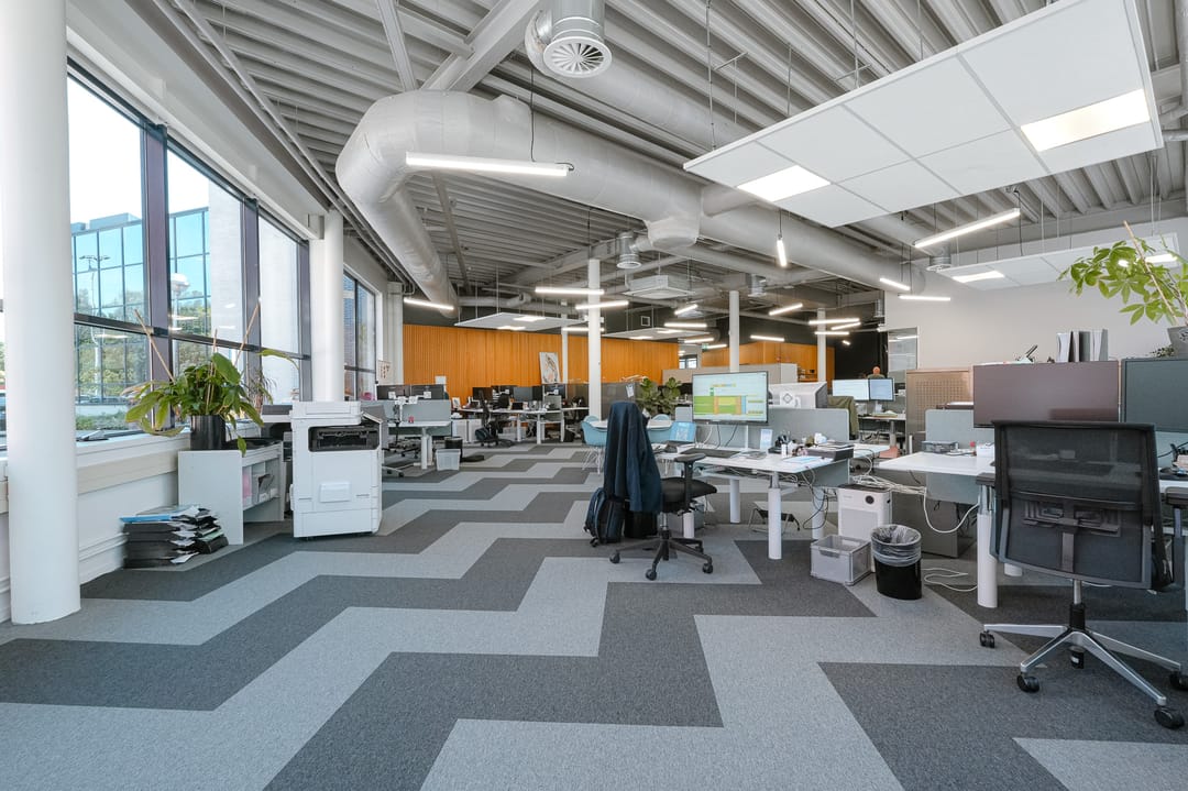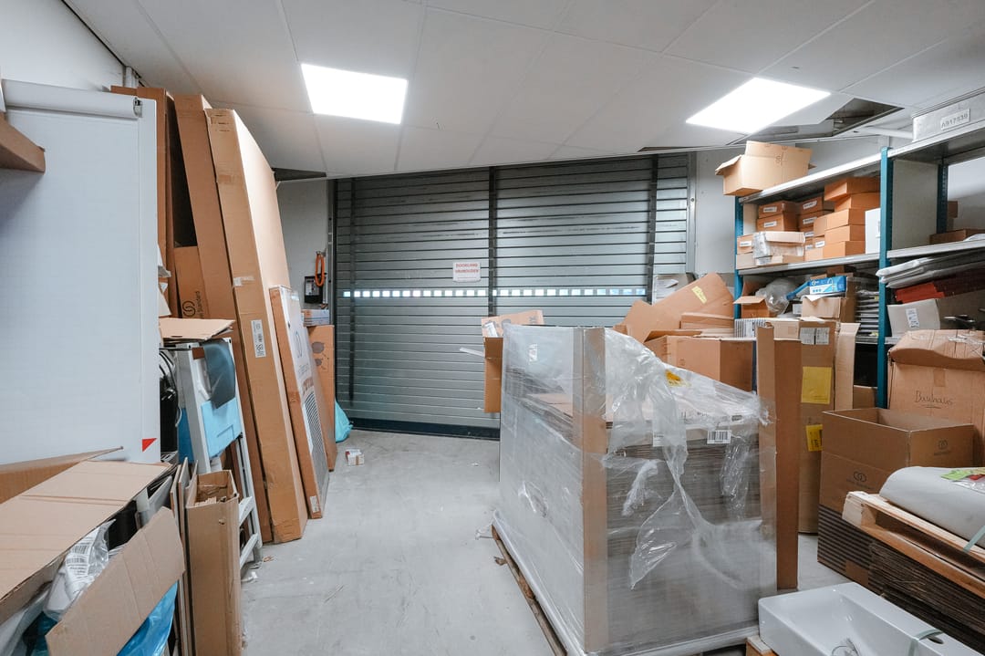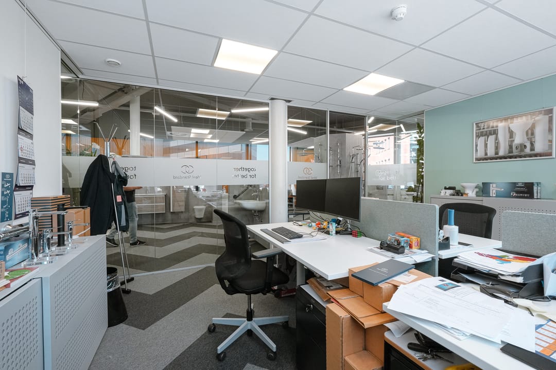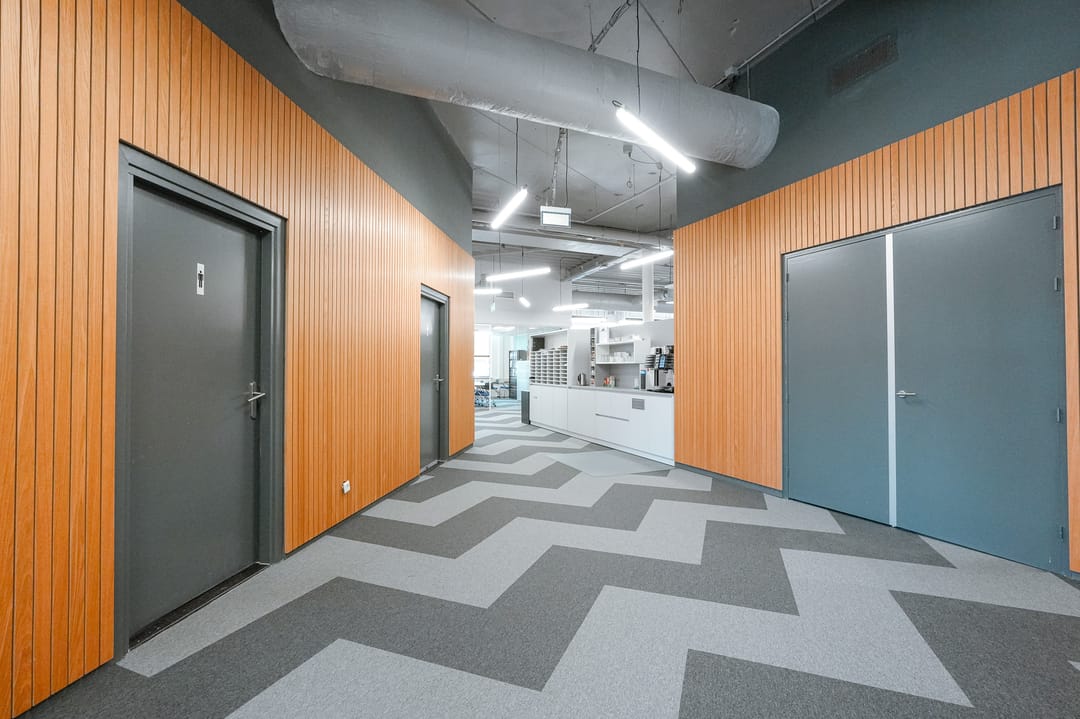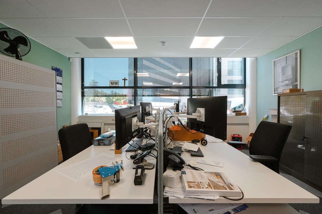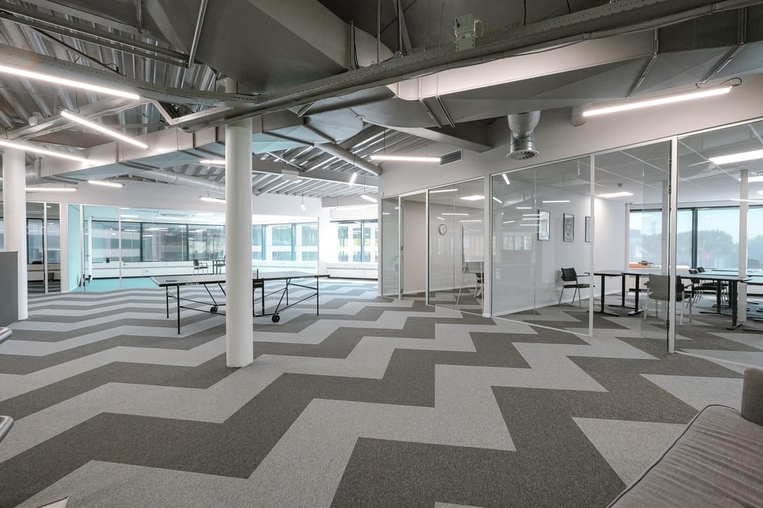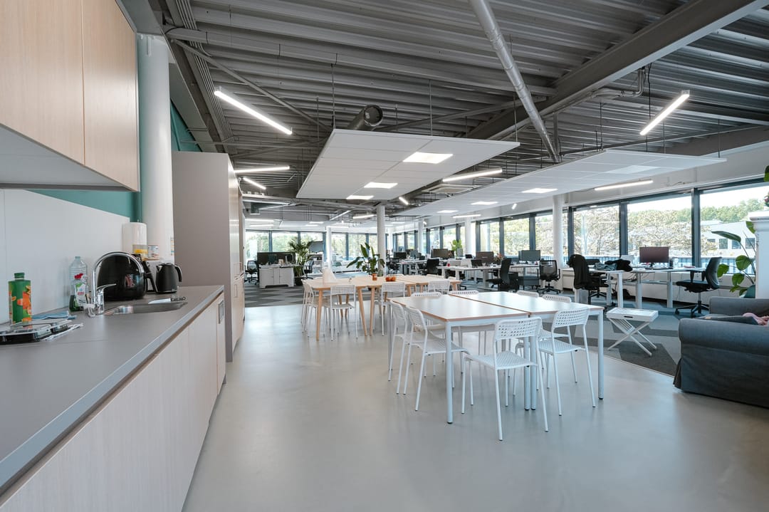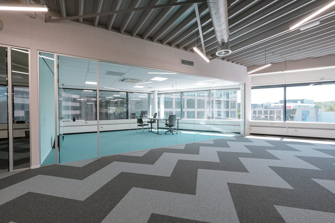 - Deels een systeemplafond voorzien van LED-inbouwverlichtingsarmaturen en deels een industrieel plafond