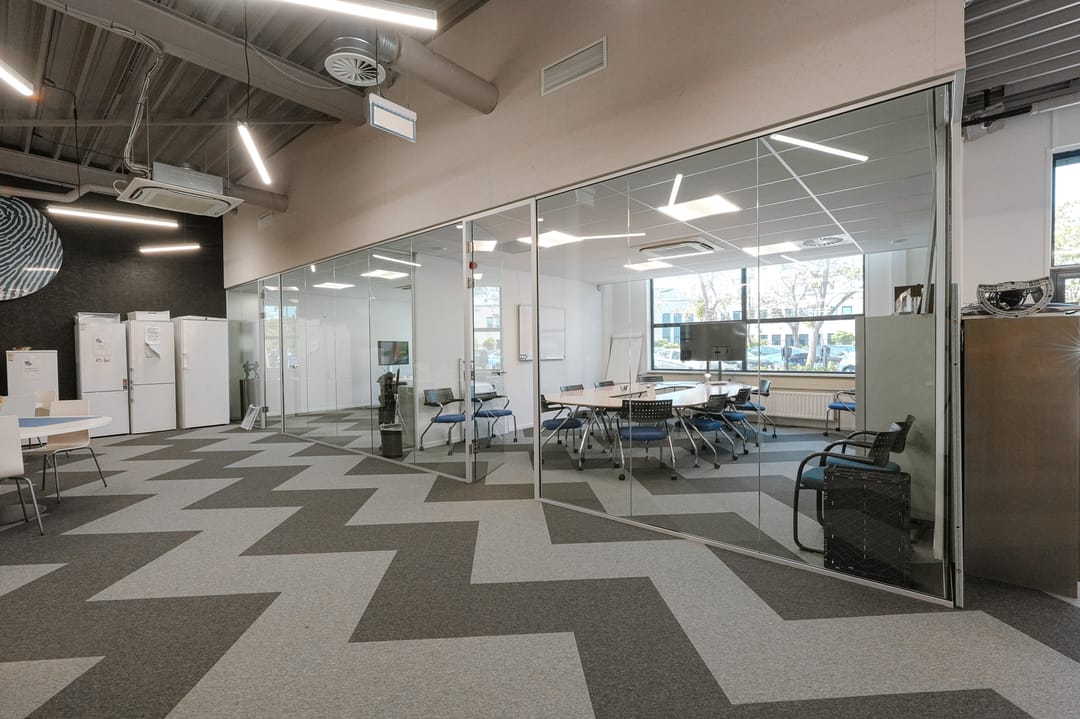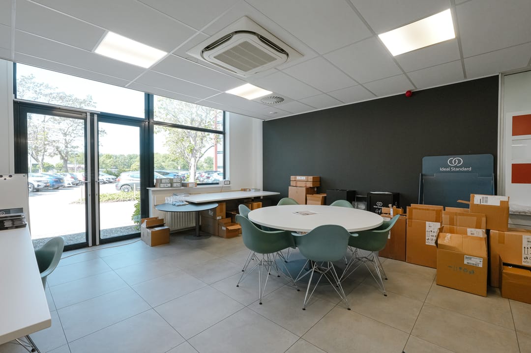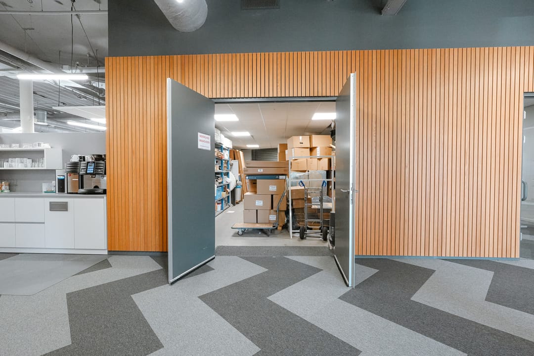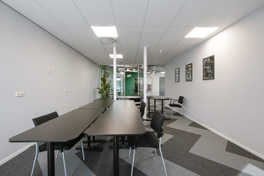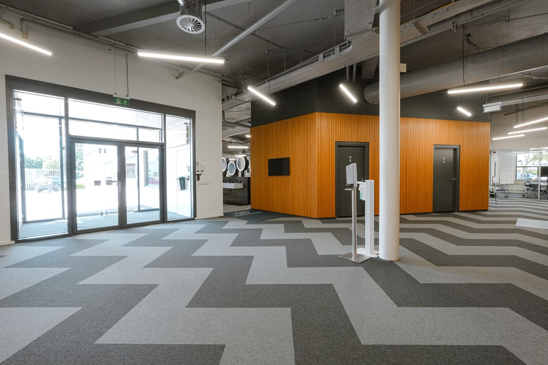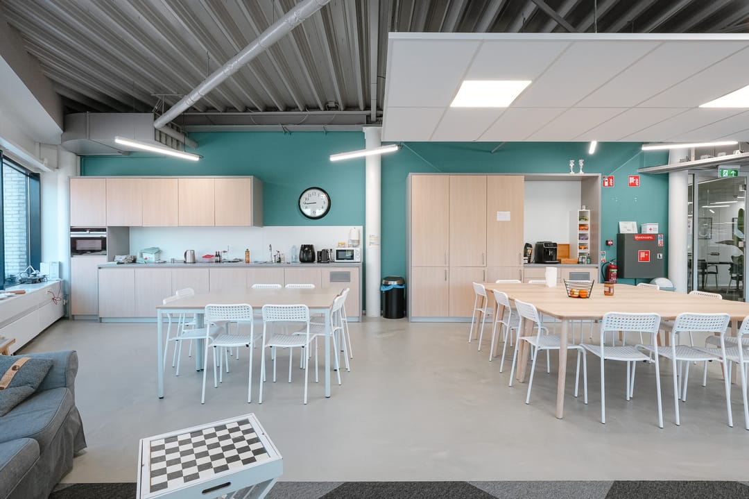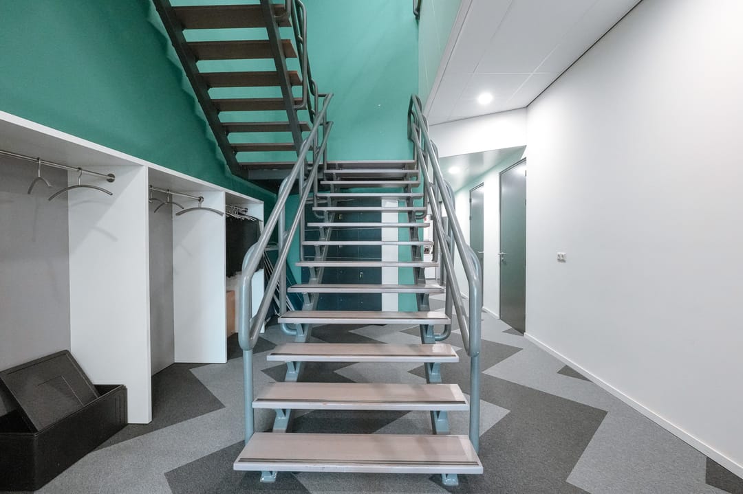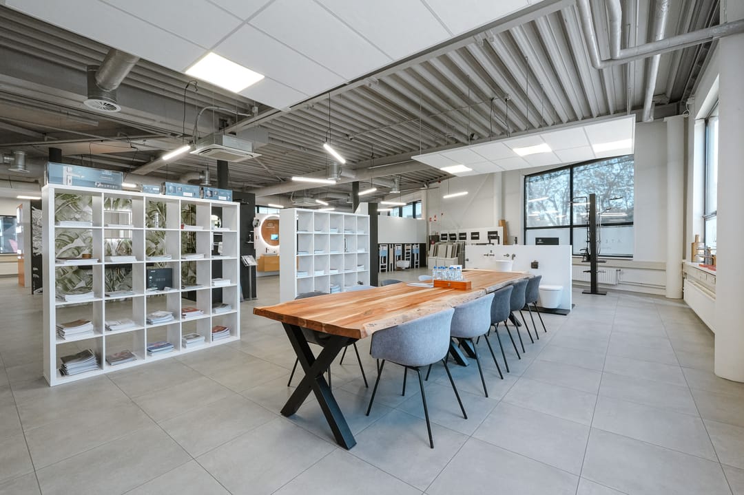 - Deels een systeemplafond voorzien van LED-inbouwverlichtingsarmaturen en deels een industrieel plafond