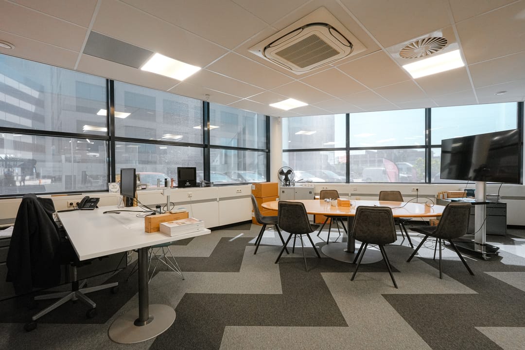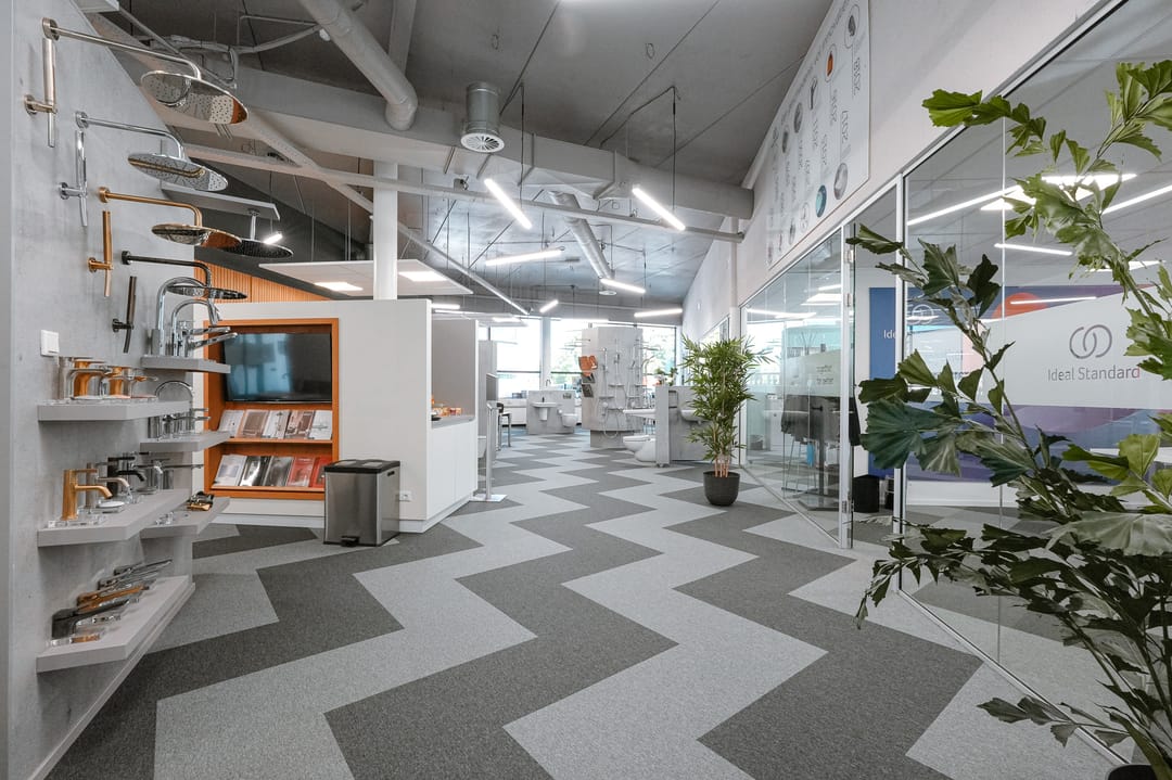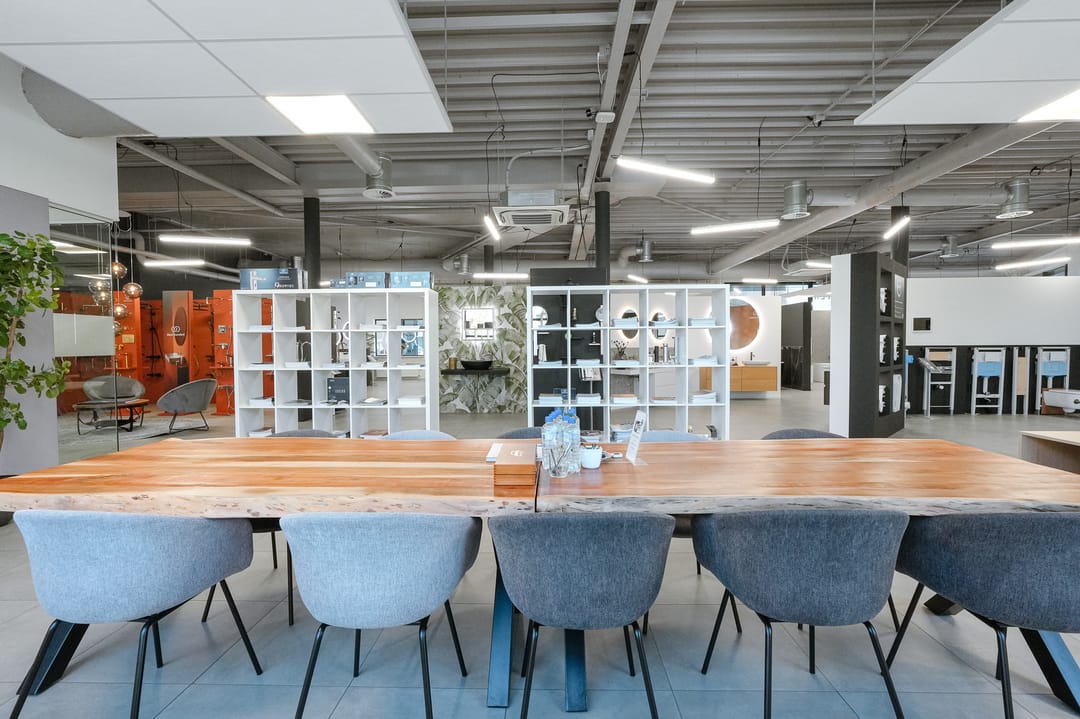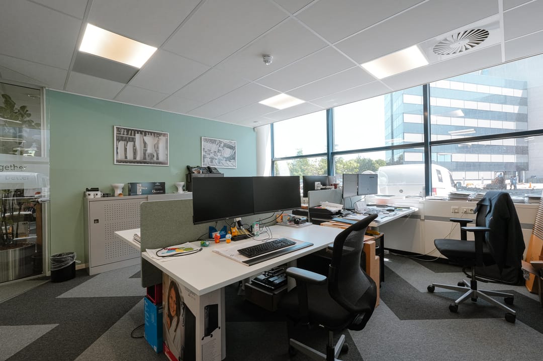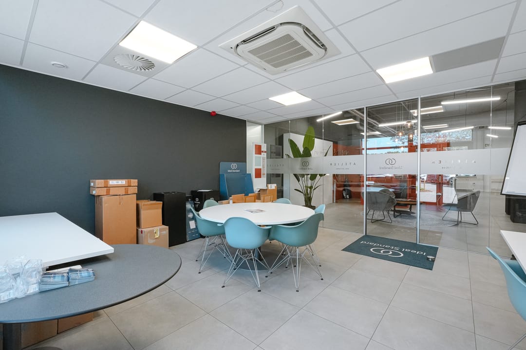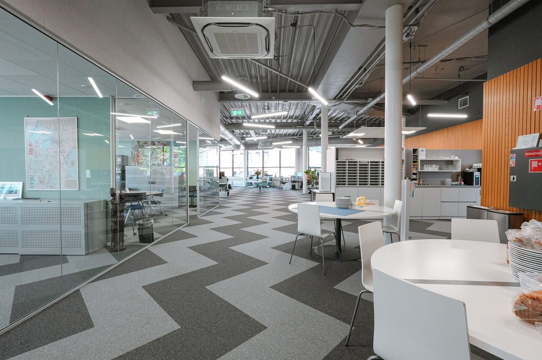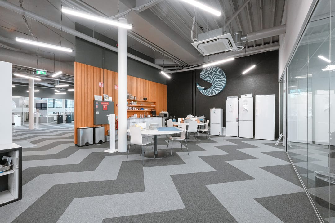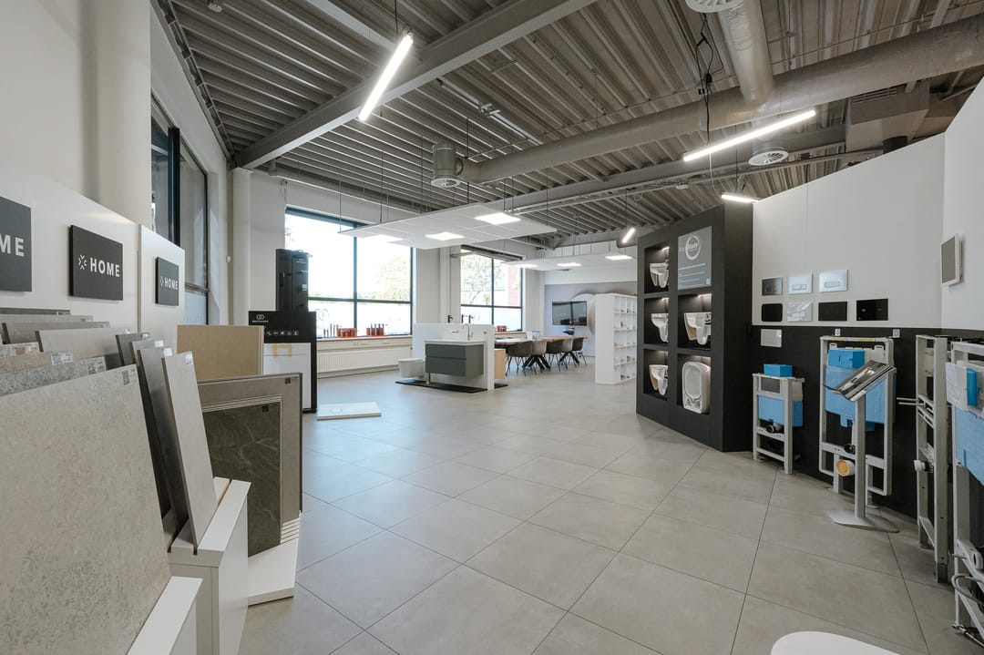 - Deels een systeemplafond voorzien van LED-inbouwverlichtingsarmaturen en deels een industrieel plafond