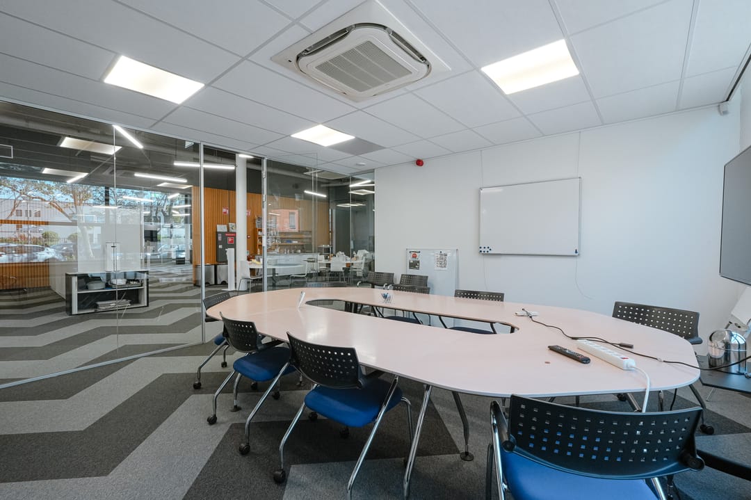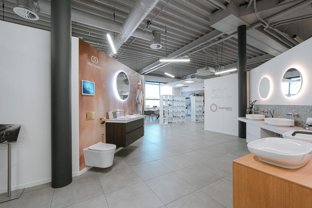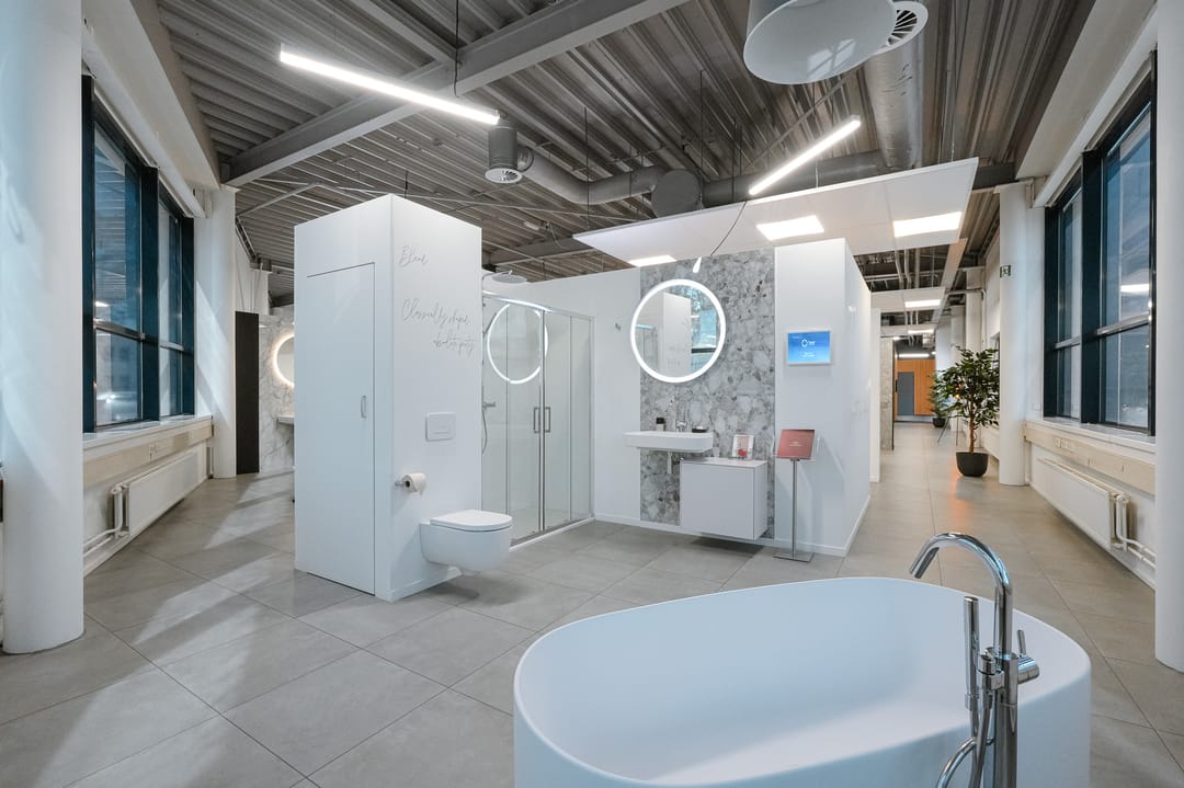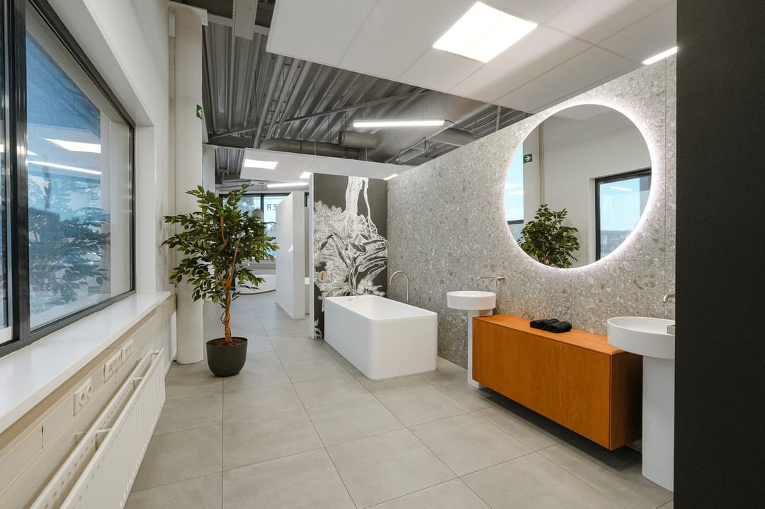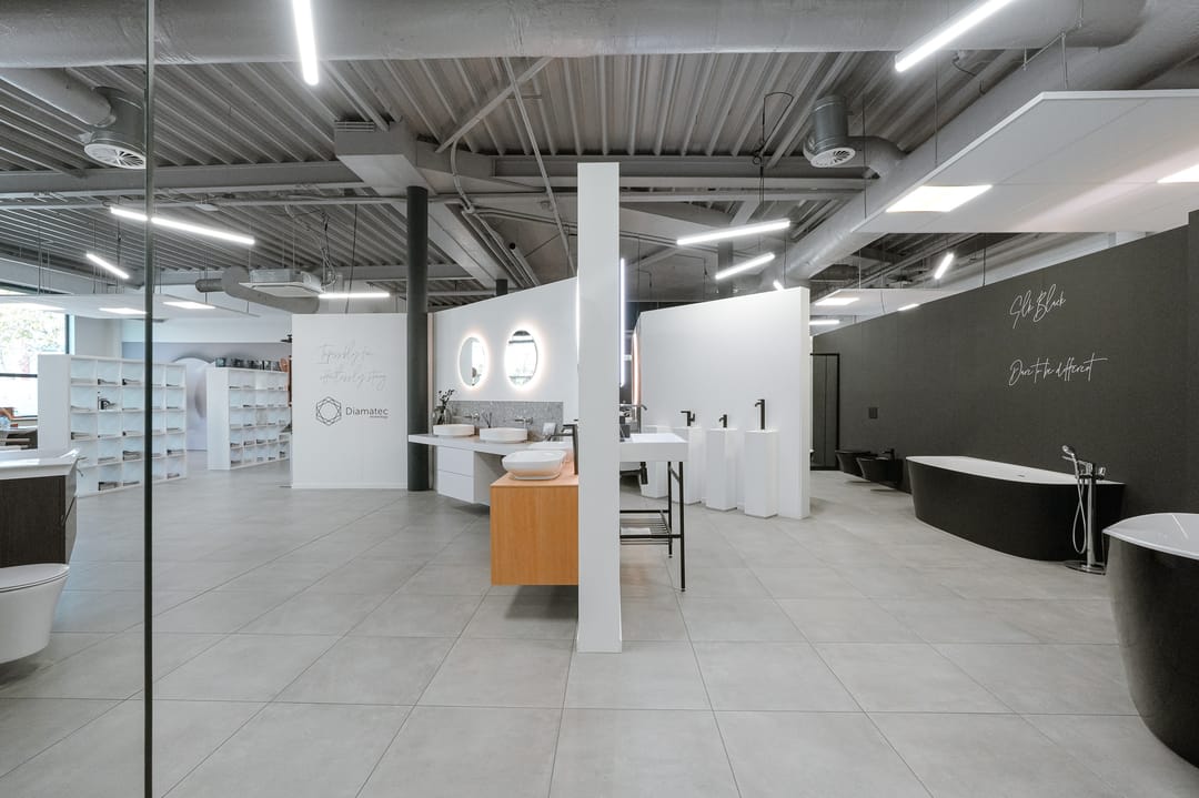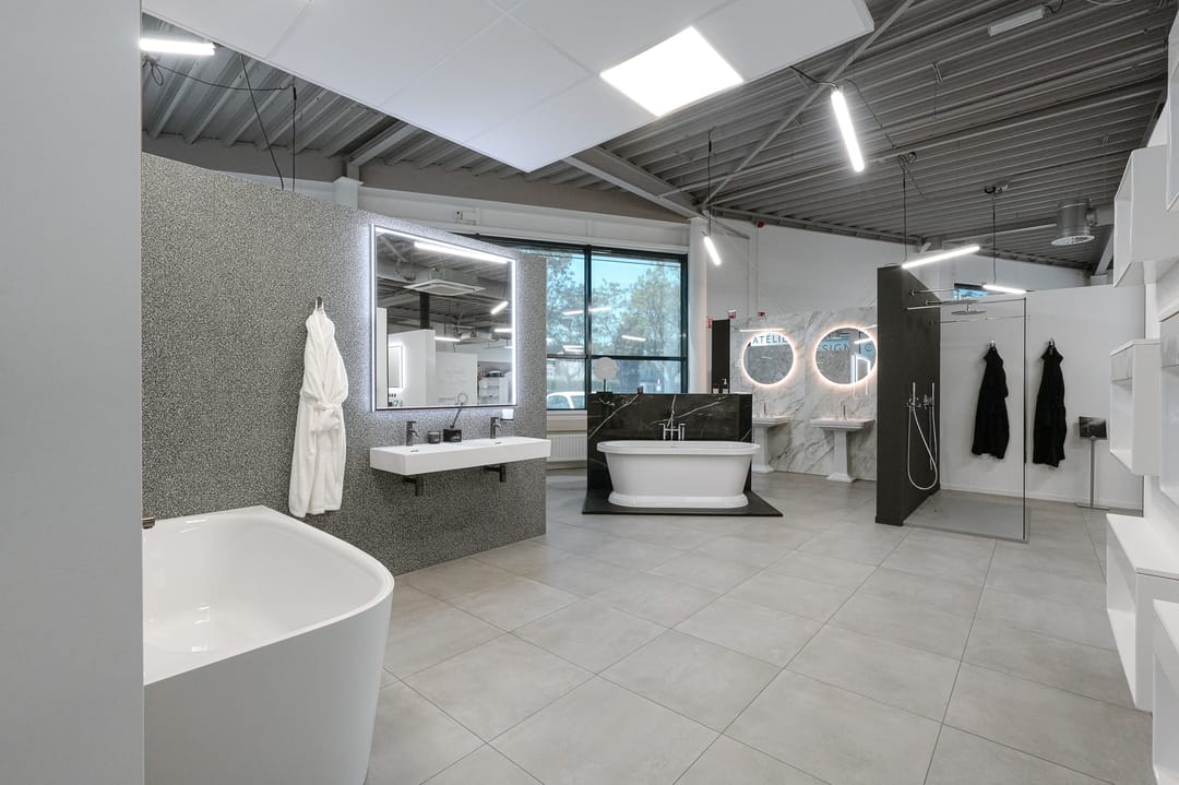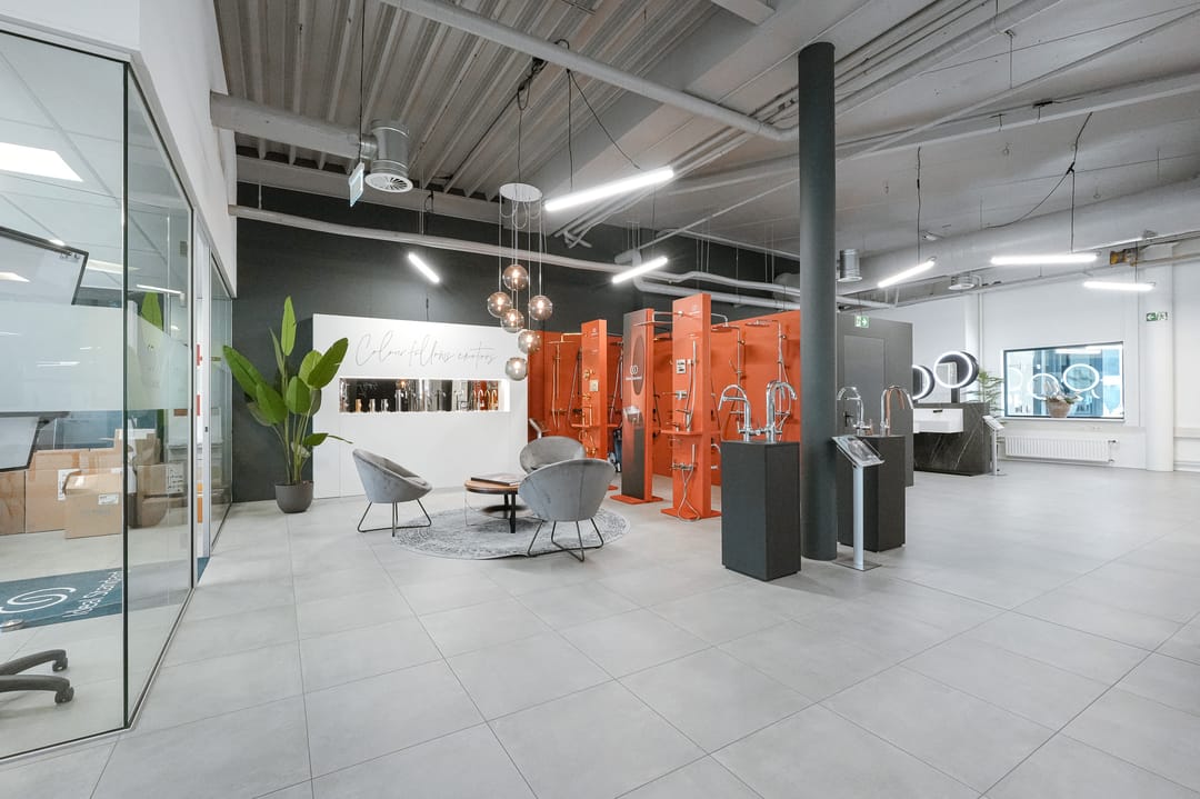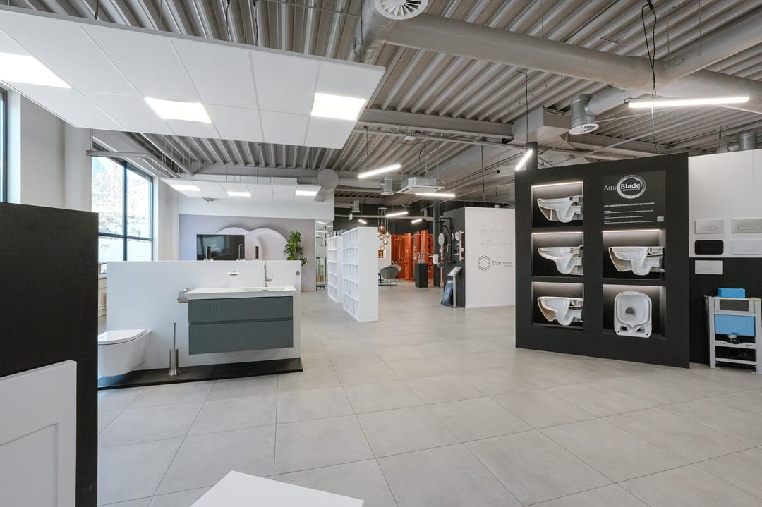 - Deels een systeemplafond voorzien van LED-inbouwverlichtingsarmaturen en deels een industrieel plafond