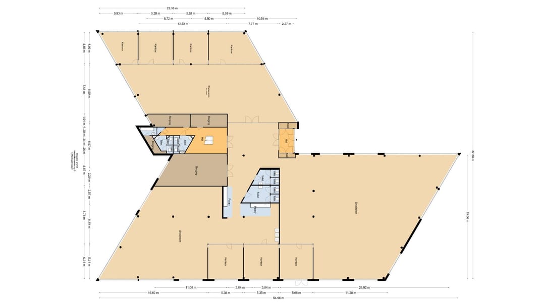 - Huidige indeling middels transparante en dichte scheidingswanden