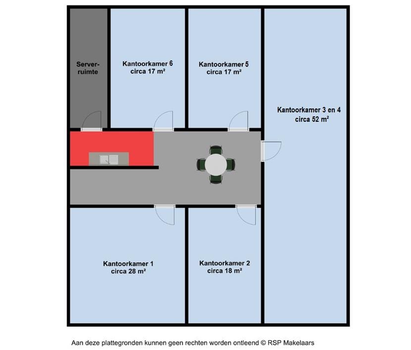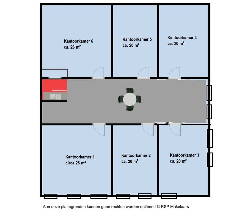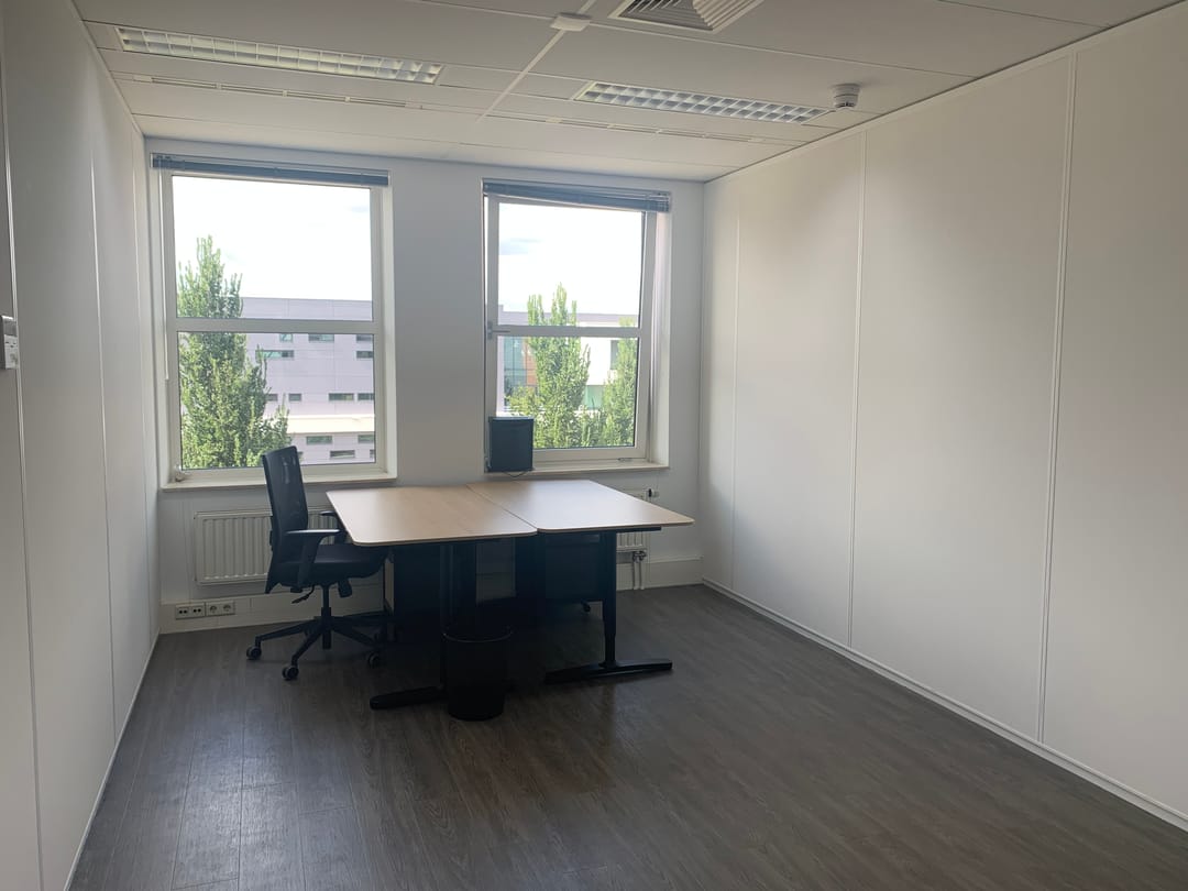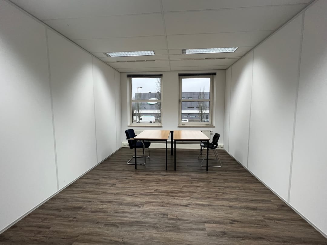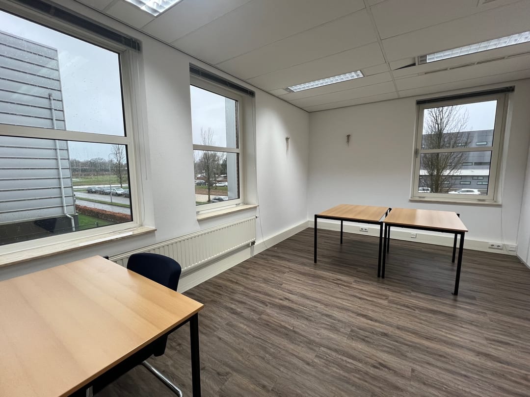 De kantoorkamers zijn afzonderlijk, dan wel in combinatie met elkaar te huur.