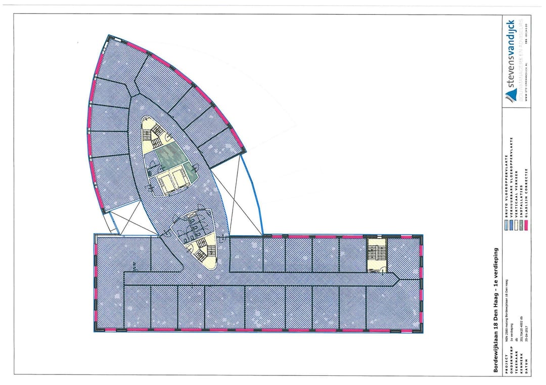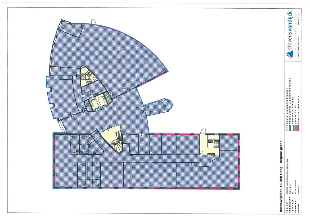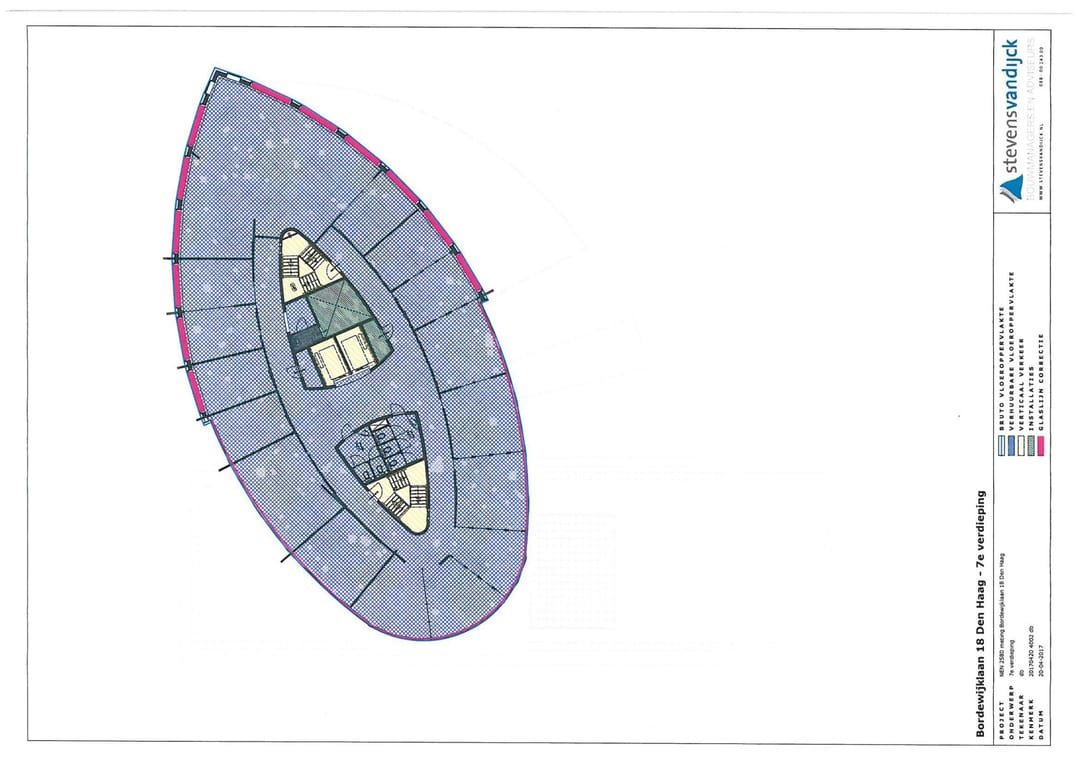 De huidige oppervlakte van het totale pand aan de Bordewijklaan 18 bedraagt 7.617 m² vvo kantoorruimte, verdeeld over de begane grond tot en met de 8e etage.