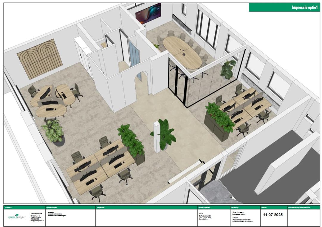 De ruimte ondergaat een complete renovatie en wordt getransformeerd tot een moderne, stijlvolle kantoorunit met hoogwaardige afwerking en up-to-date voorzieningen.