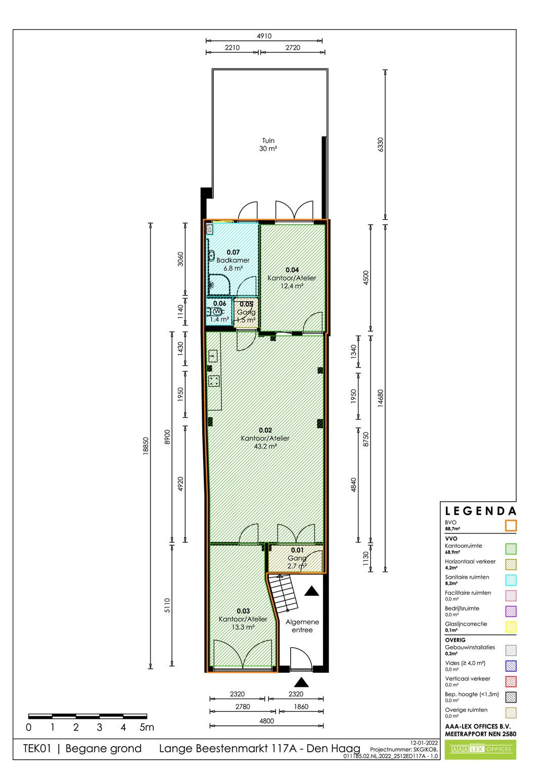 in opdracht van de eigenaar is er een meetstaat NEN 2580 opgemaakt. Het Verhuurbaar Vloer Oppervlak omvat: 81,40 m2