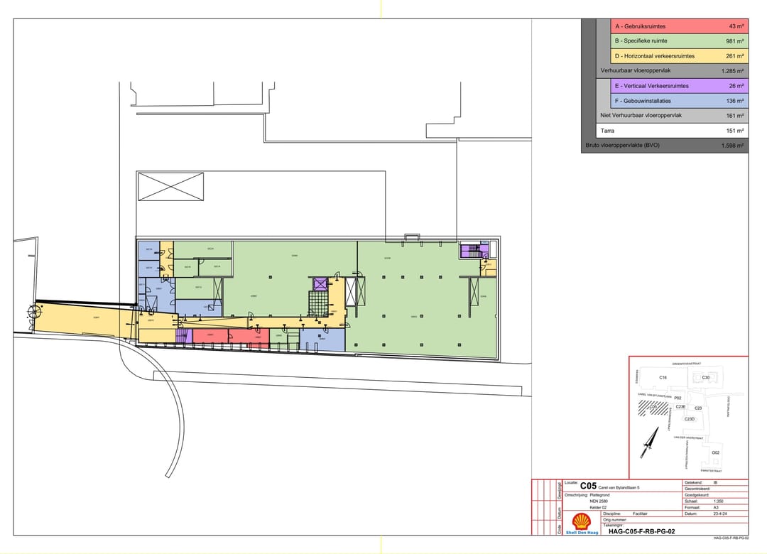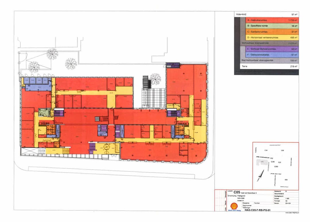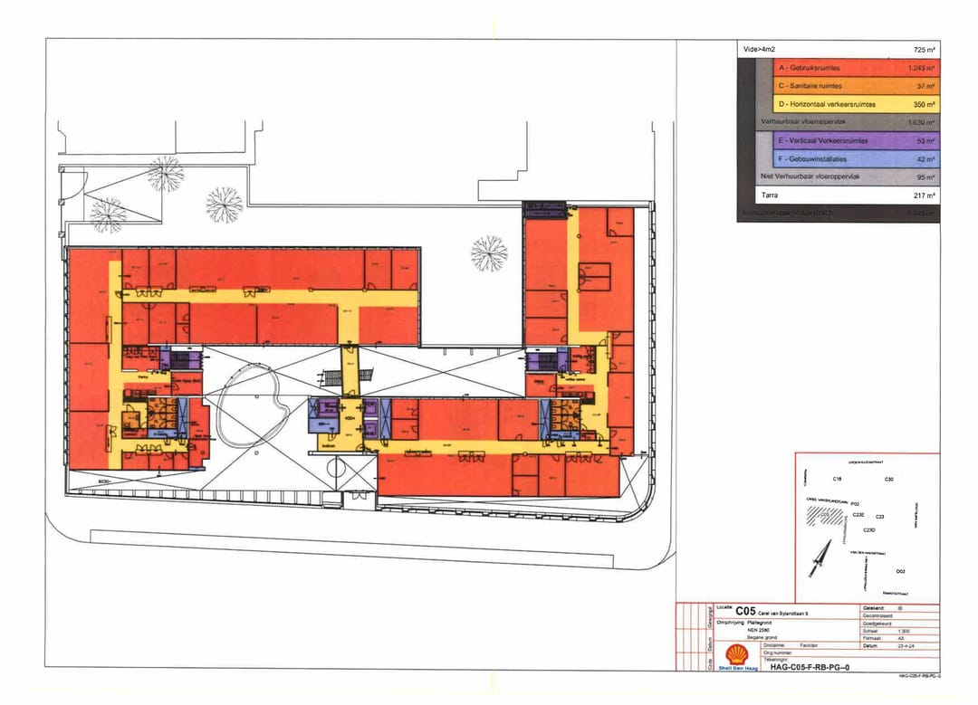 Het kantoorgebouw ‘C5’ op de hoek van de Raamweg en de Carel van Bylandtlaan is een representatief en zeer duurzaam gebouw, gelegen op een prominente locatie in het Benoordenhout.