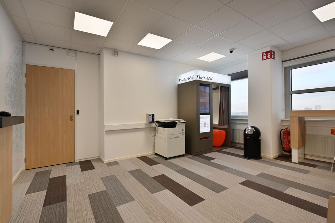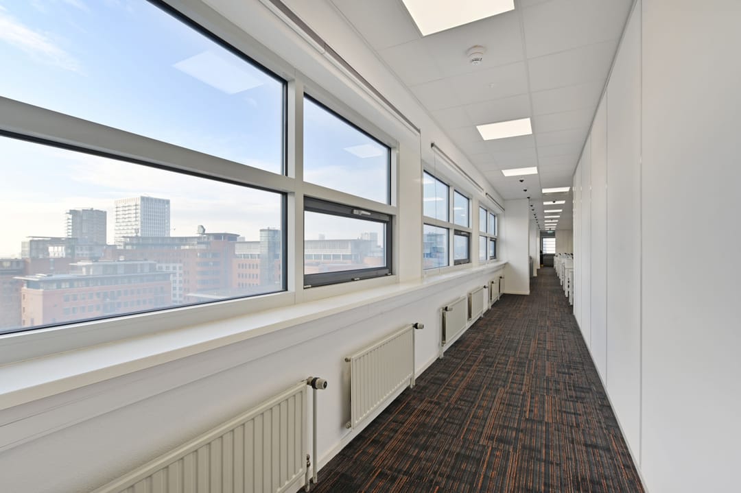 In het gebouw is 580 m² v.v.o. kantoorruimte op de 9e verdieping beschikbaar voor verhuur.