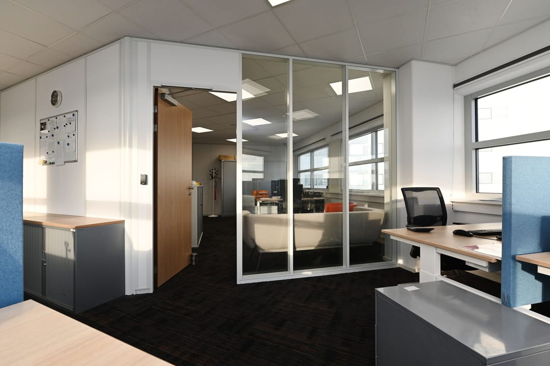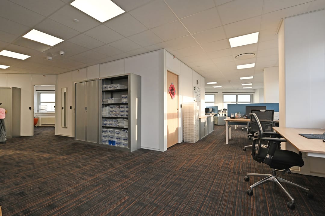 In overleg kan het inbouwpakket en het aanwezige kantoormeubilair tegen nader overeen te komen voorwaarden worden overgenomen.
