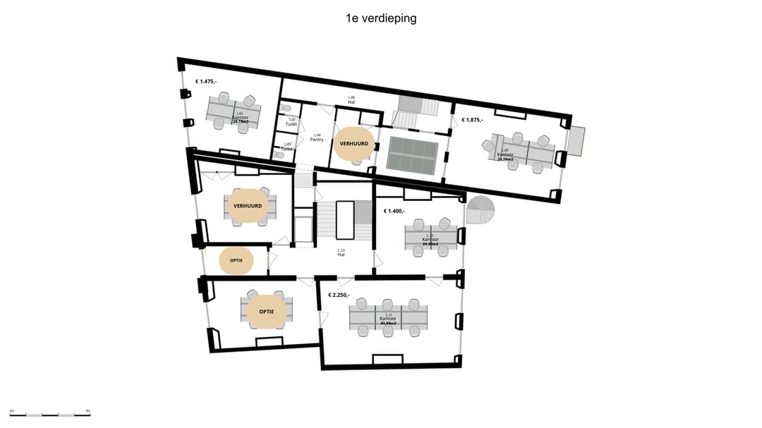 - unit 1.01 ca. 28,7 m² - € 1.475,- per maand