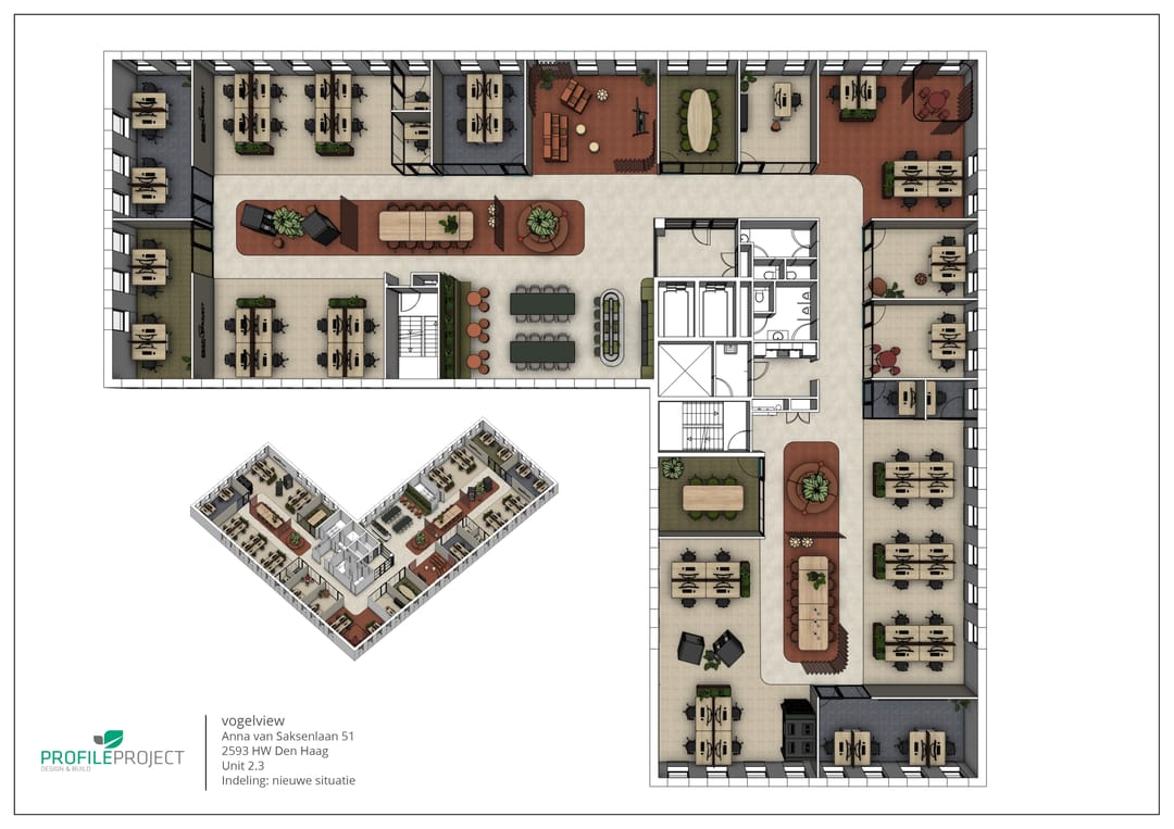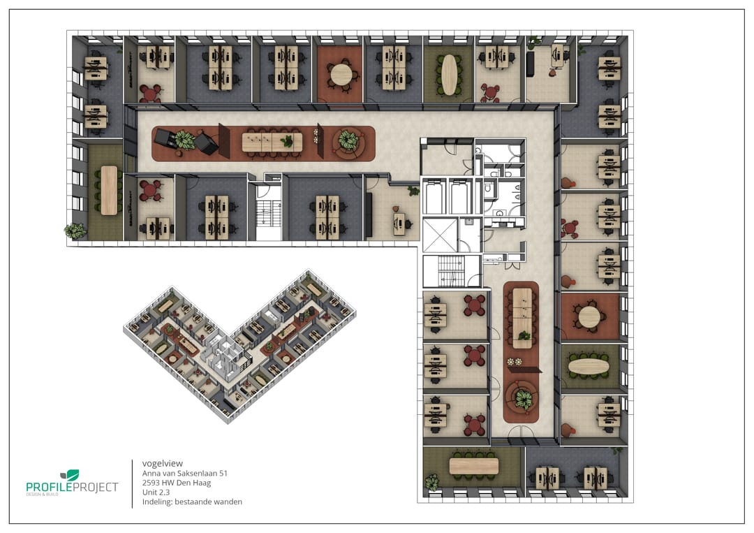 • nieuw te plaatsen systeemplafond voorzien van geïntegreerde LED-verlichting;