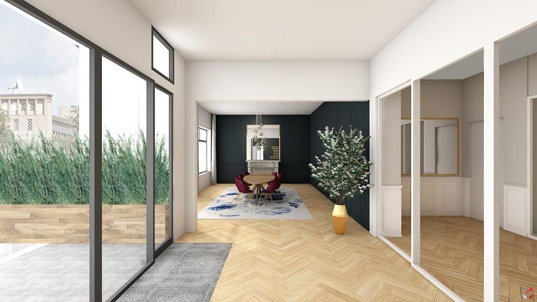 Kantoorruimte: € 135,= per m² per jaar, te vermeerderen met BTW.