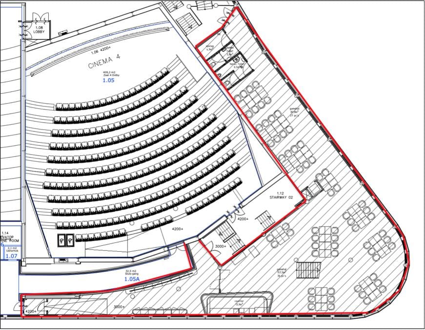 het bruto vloeroppervlak (gemeten van glaslijn tot glaslijn en aan de binnenzijden van de buitenmuren), exclusief stijgpunten en technische ruimten, doch inclusief gangen, toiletten en dergelijke.